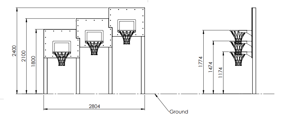 Home / Produkte / Sport und Fitness / Sportgeräte / Basketballkonstruktion mit 3 Körben TRIO