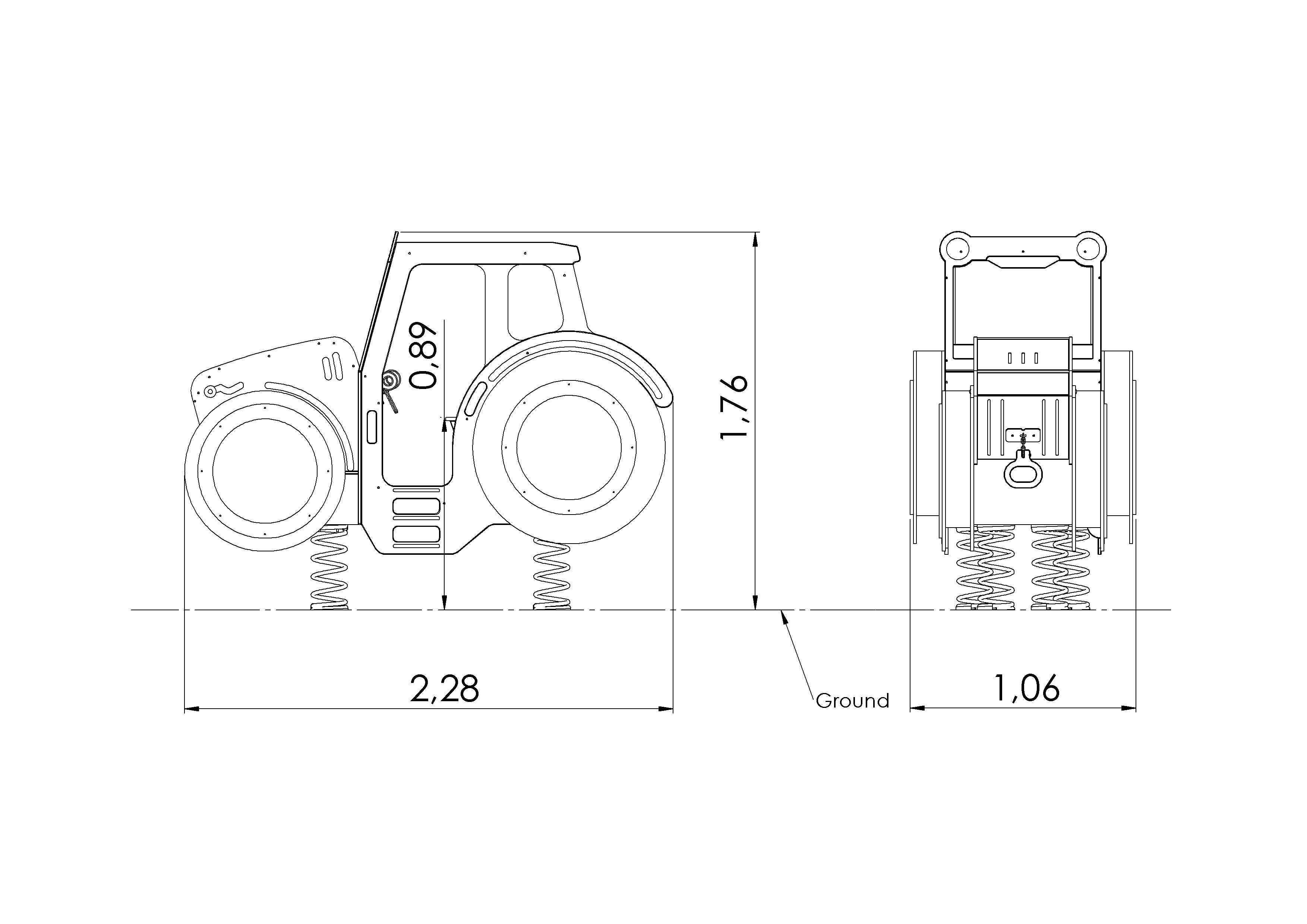 Die Federn bestehen aus verzinktem und pulverbeschichtetem Stahl. Der Rahmen des Dachs besteht aus feuerverzinktem Stahl. Der Traktorkörper ist aus HDPE-Kunststoff gefertigt. Die Befestigungselemente des Produkts bestehen aus feuerverzinktem Stahl; in der Standardausführung wird das Produkt im Beton verankert.