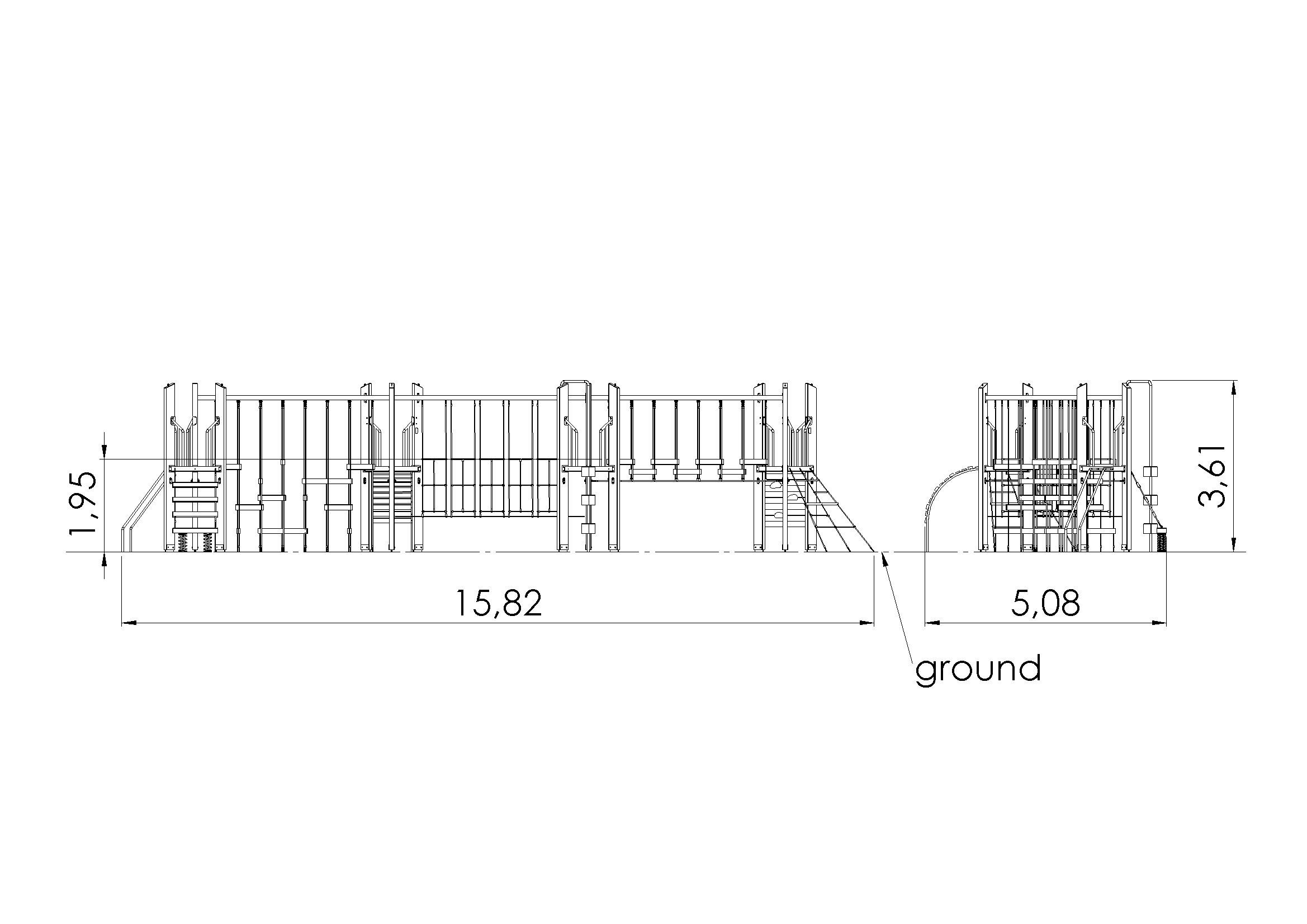 Kletterwände: Brettschichtholz (imprägniert und beschichtet).
