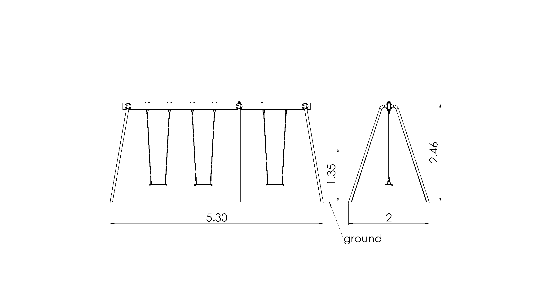 Home / Produkte / Spielanlagen / Schaukeln / Schaukel EAGLE 3 Plätze (ohne Sitze und Befestigungen)