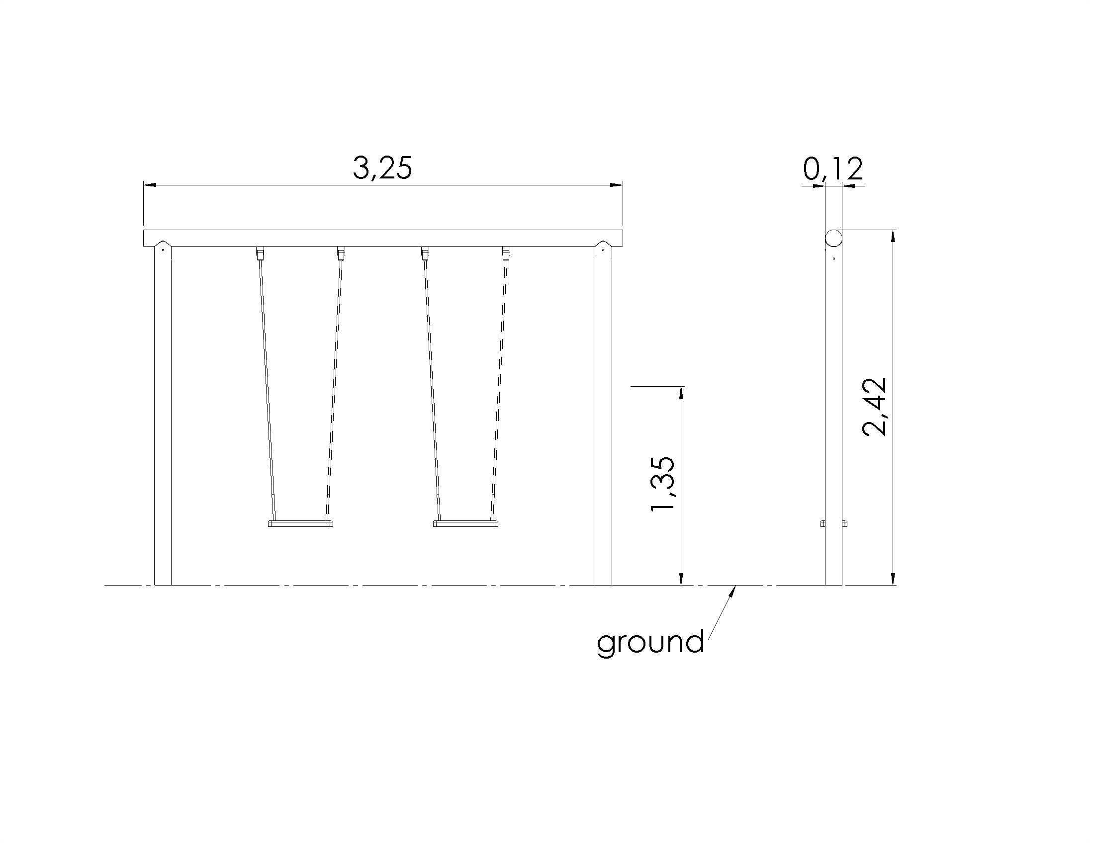 Schaukel STROH 2 Orte (ohne Sitze und Befestigungen)