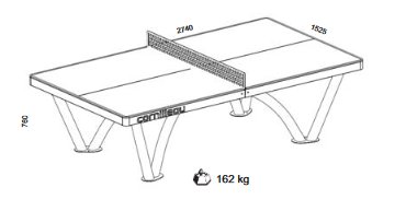 Der Tisch PARK wird in Frankreich aus hochfesten Materialien hergestellt und zeichnet sich durch Robustheit gegenüber Stößen, Wettereinflüssen oder Vandalismus aus. Er bietet die beste Spielqualität auf dem Markt in dieser Kategorie. Der Tisch kann in Parks, neben dem Spielplatz, auf Terrassen, in Campingplätzen installiert werden und benötigt wenig Platz. Maße: 2740 x 1525 x 760 mm, Gewicht 245 kg.