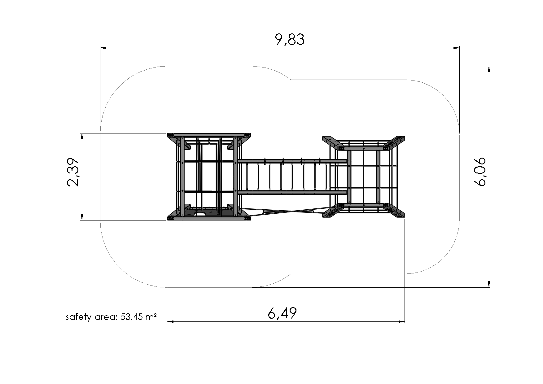 The unique AMAZON climbing frame is made of durable laminated timber and it has been awarded the relevant quality certificates. Posts of laminated timber decorated with different ornaments are joined together using the innovative mortise joint. The cross-section of the posts is 105x210mm and the nets between them are made of extremely durable 16mm steel rope designed for climbing which is coated with polyester and features plastic joints. The climbing wall with climbing rocks is made of waterproof birch plywood. This functional climbing frame offers various climbing, balancing and crawling opportunities. Vertical and horizontal climbing nets connect the elements. The laminated and painted timber posts are concreted to the ground using hot-dipped galvanized metal fittings.