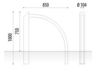 Ari bicycle parking built in 304 or 316 stainless steel, pillar with flute-type upper cut and curved arch.