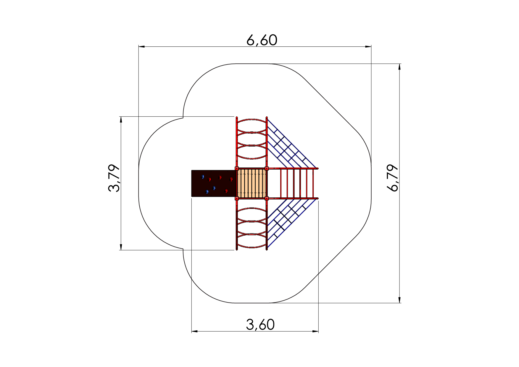 Climbing frame CRAB provides a ladder, a climbing net and a climbing slope for reaching the platform and heading down again. It helps kids develop dexterity and balance and improves their physical fitness.
