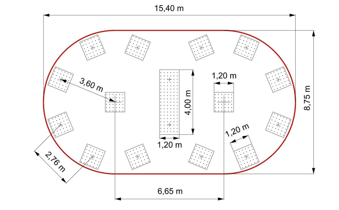 The central post of the pyramid is made of hot-dip galvanized steel and the net is made of durable rope 6-strand, PES with steel core.