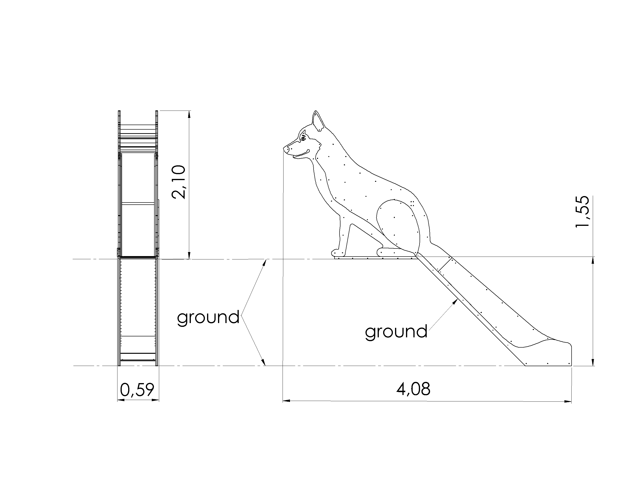 Slope slide HUSKY is a 1.5 metre high slide with a platform, suitable for slopes. This adorable slide has a husky design that captures the spirit and energy of this beloved breed. With its perky ears, friendly face, and bushy tail, it’s an irresistible invitation to play.