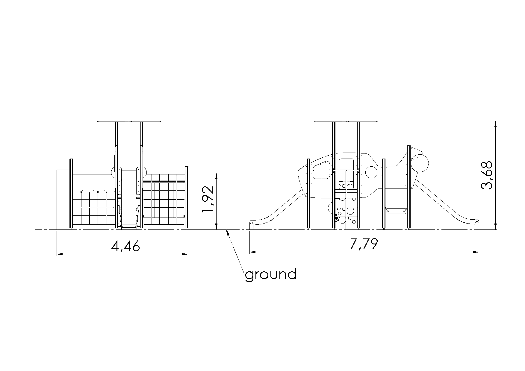 This helicopter with slides, net climbing walls and -platform offers children a variety of activities and helps develop fantasy worlds through creative play. Best helicopter that fits a whole crew. The helicopter is equipped with a cockpit with a turnable steering wheel and gear sticks, that help the helicopter take off and land. Back of the helicopter has a room where pilots can rest before their next flight.