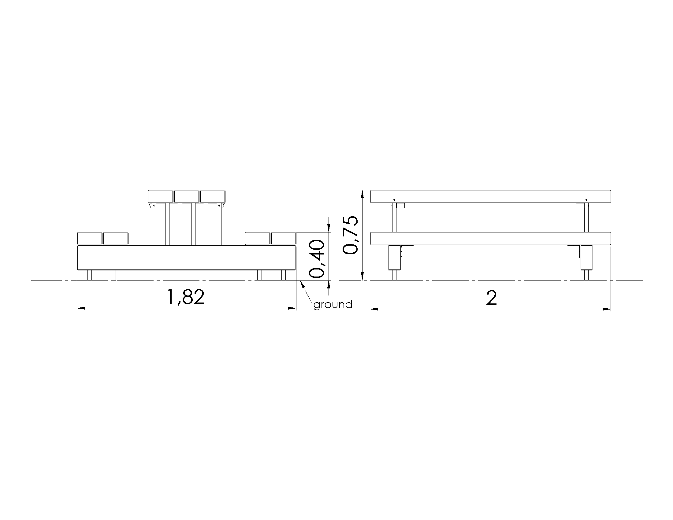 A strong, massive and durable picnic table, designed for use by children and adults. Suitable for recreation areas and for outdoor studying. It is a traditional table with benches made of solid, weather-resistant laminated timbel. The metal parts of the product are made of hot-dip galvanised metal. The bench is concreted into the ground with metal pipe ground anchors.