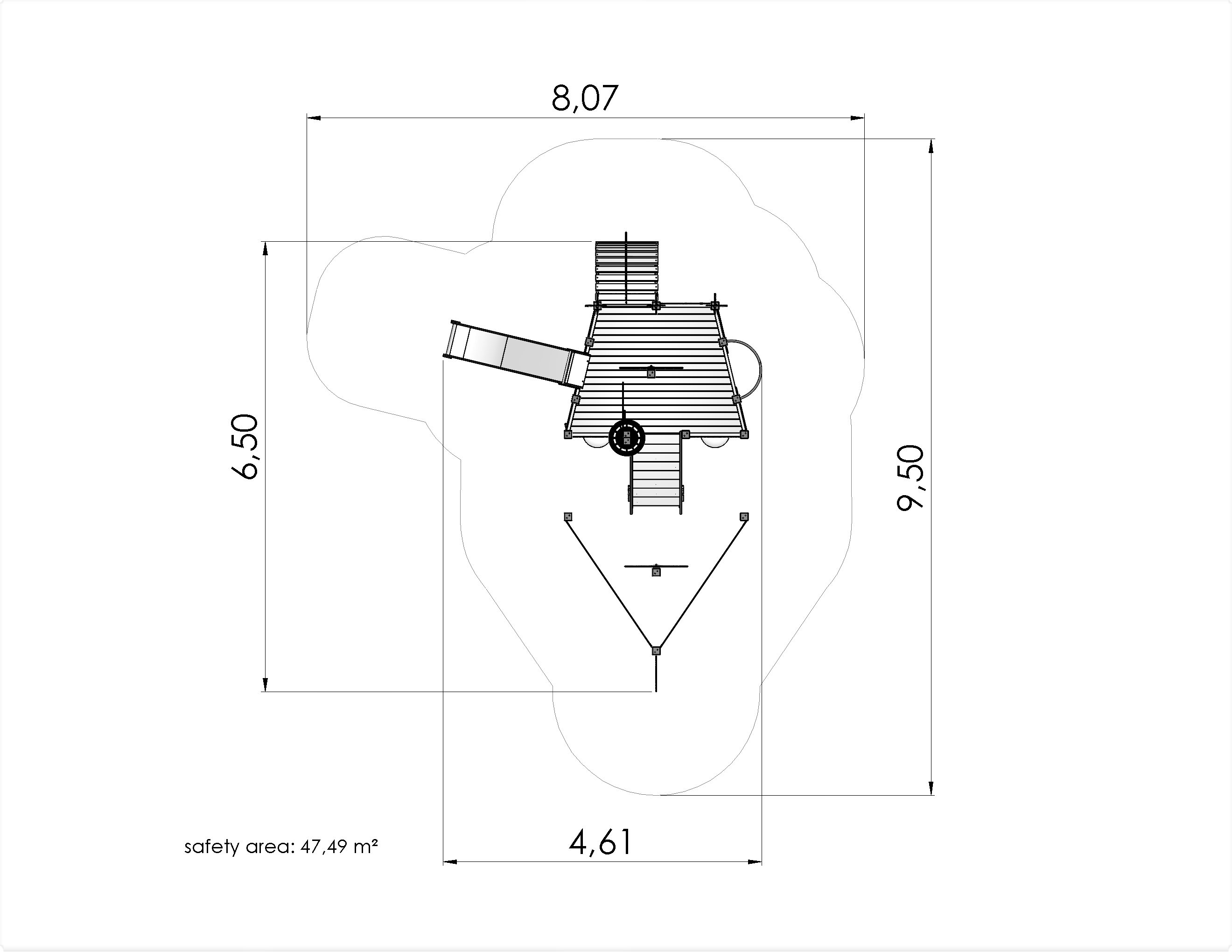 This lovely wooden sailing ship GUSTAV VASA 3 is suitable for small children. The ship has one big platform with height 1.2 m. The platform has the captain's steering wheel and a slide; there is a sandbox under the platform.
