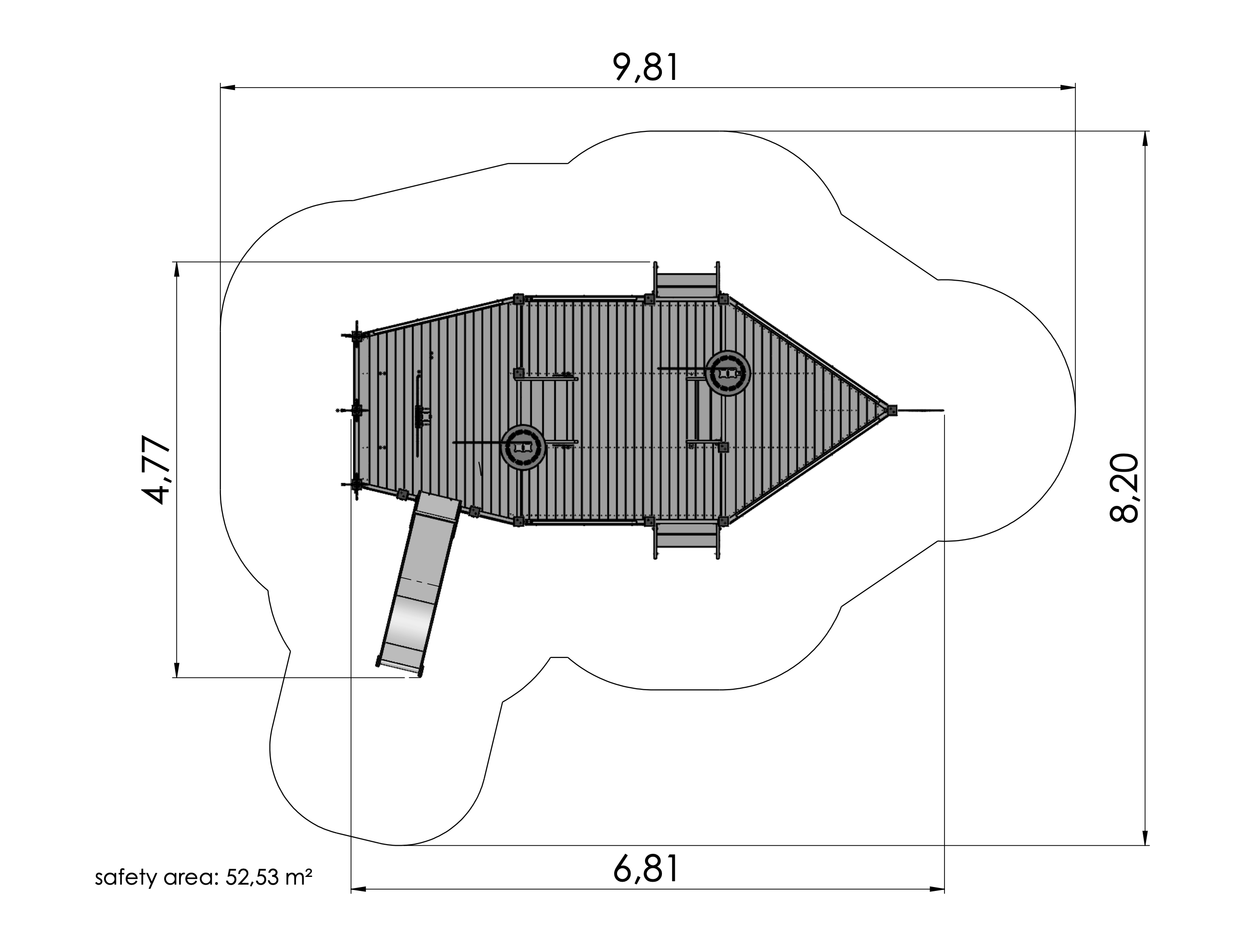 This great wooden sailing ship GUSTAV VASA is suitable for small children. The ship has three platforms with heights of 0.45 m, 0.9 m and 1.2 m. You can use the stairs to reach different platforms. The highest platform has the captain's steering wheel and a slide; there is a sandbox under the platform. For an additional fee, the product's standard panels can be replaced with activity panels.