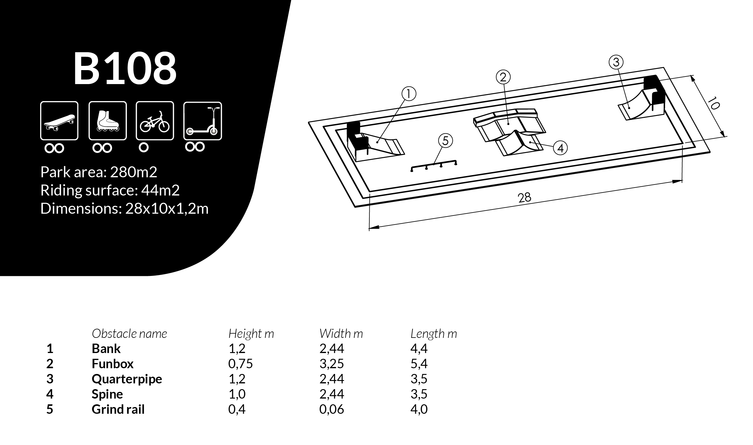 Home / Products / Skateparks / Ready-made solutions / Skatepark L28 x W10 x H1.2