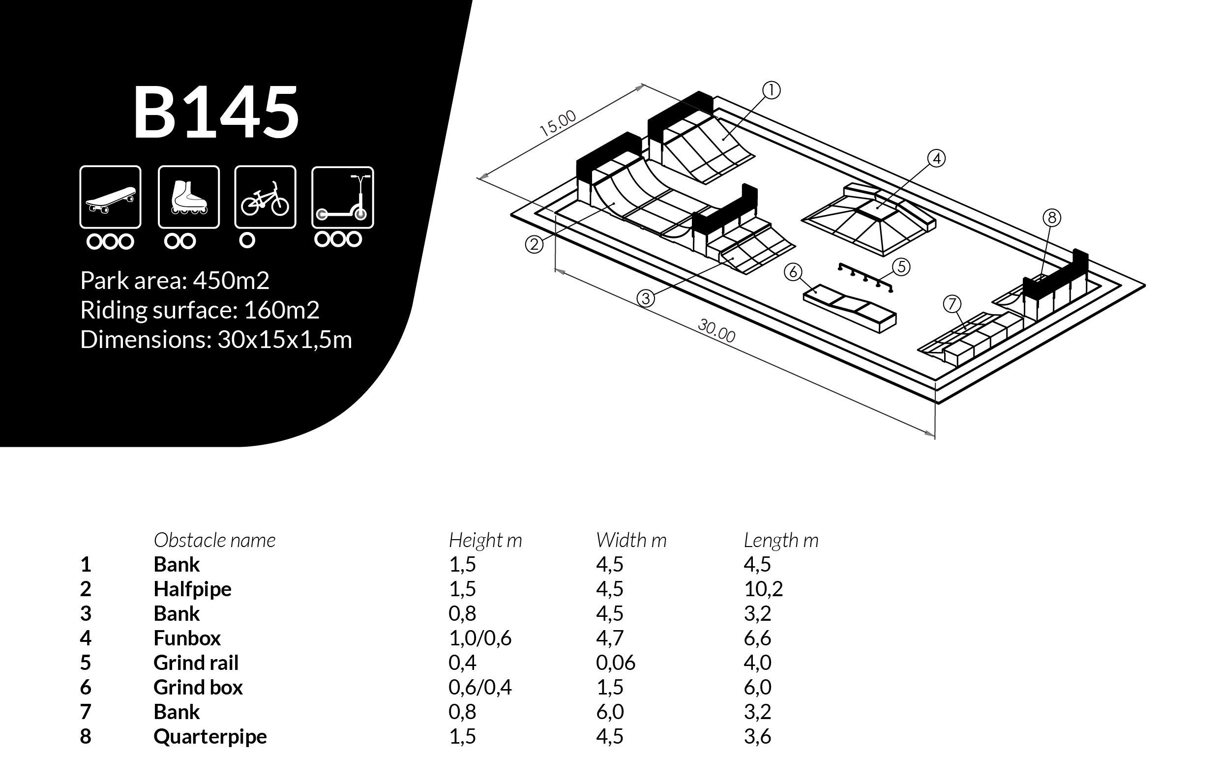 Home / Products / Skateparks / Ready-made solutions / Skatepark L30 x W15 x H1.5