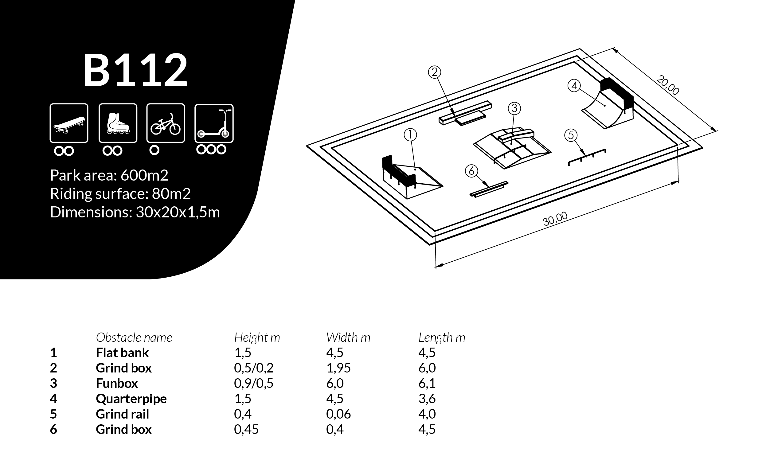 Skatepark L30 x W20 x H1.5