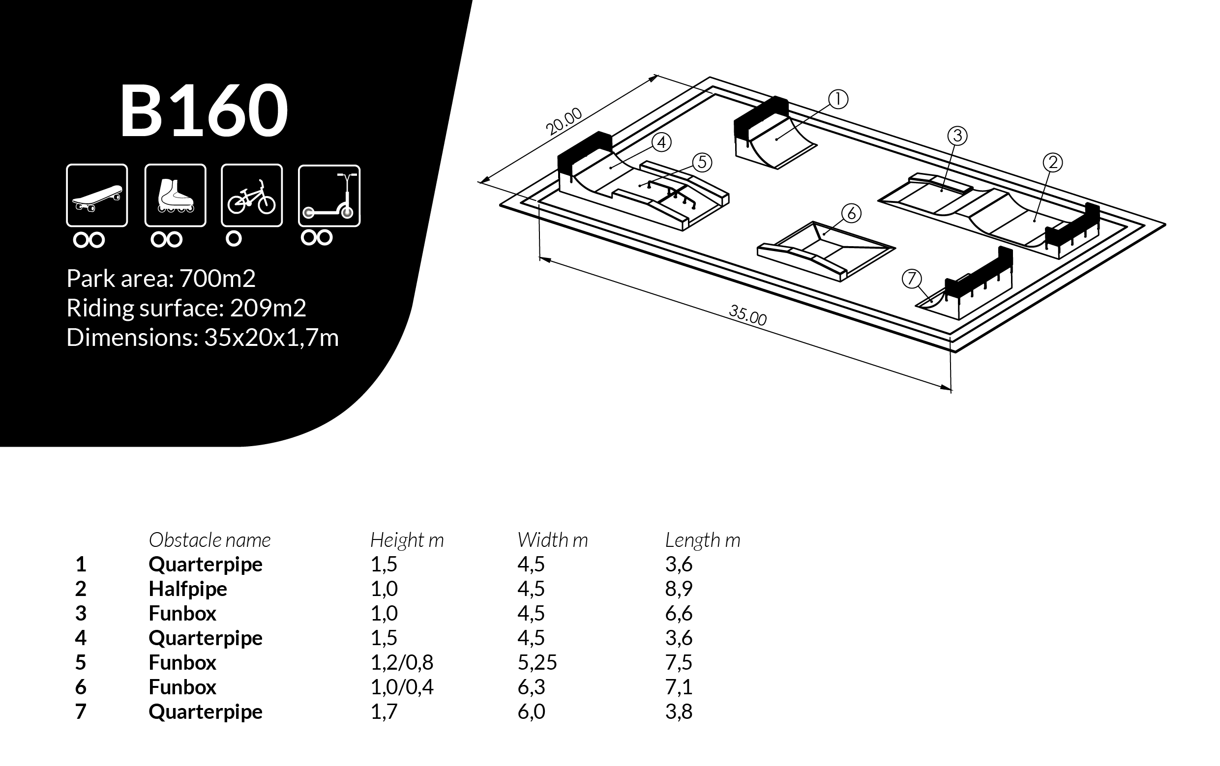Skatepark L35 x W20 x H1.7