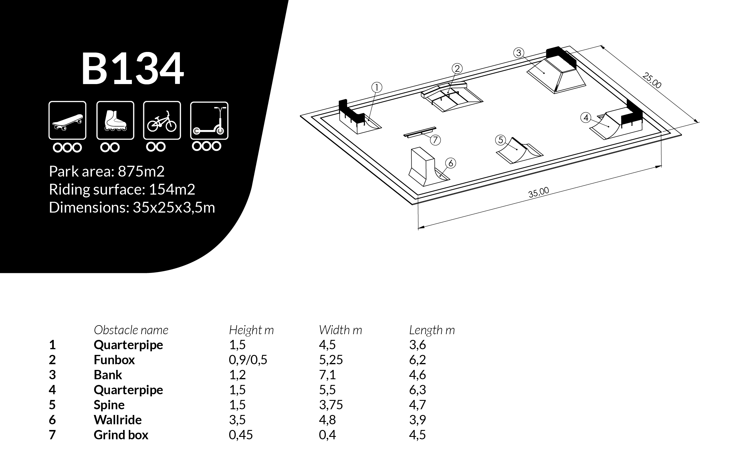 Skatepark L35 x W25 x H3.5