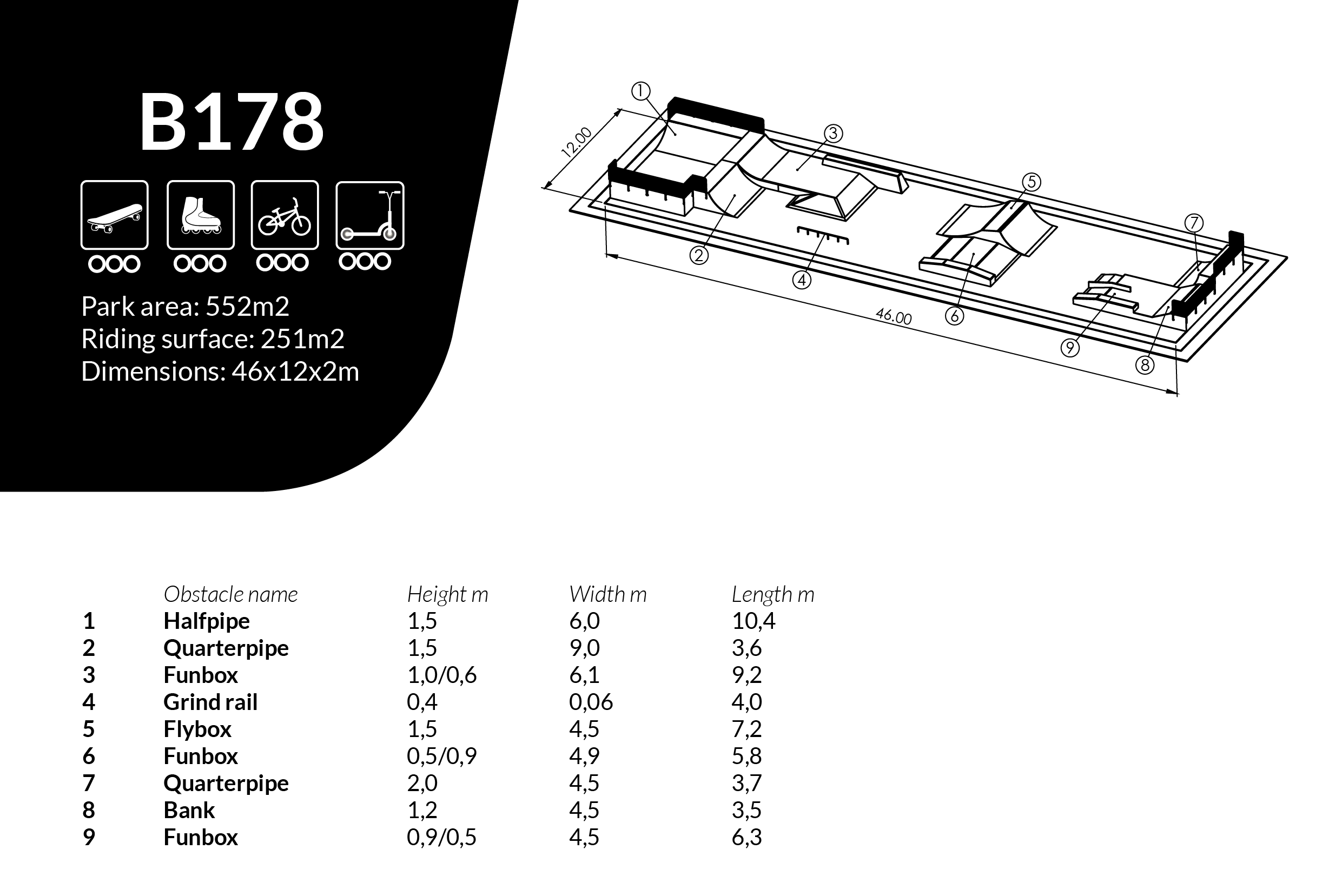 Home / Products / Skateparks / Ready-made solutions / Skatepark L46 x W12 x H2
