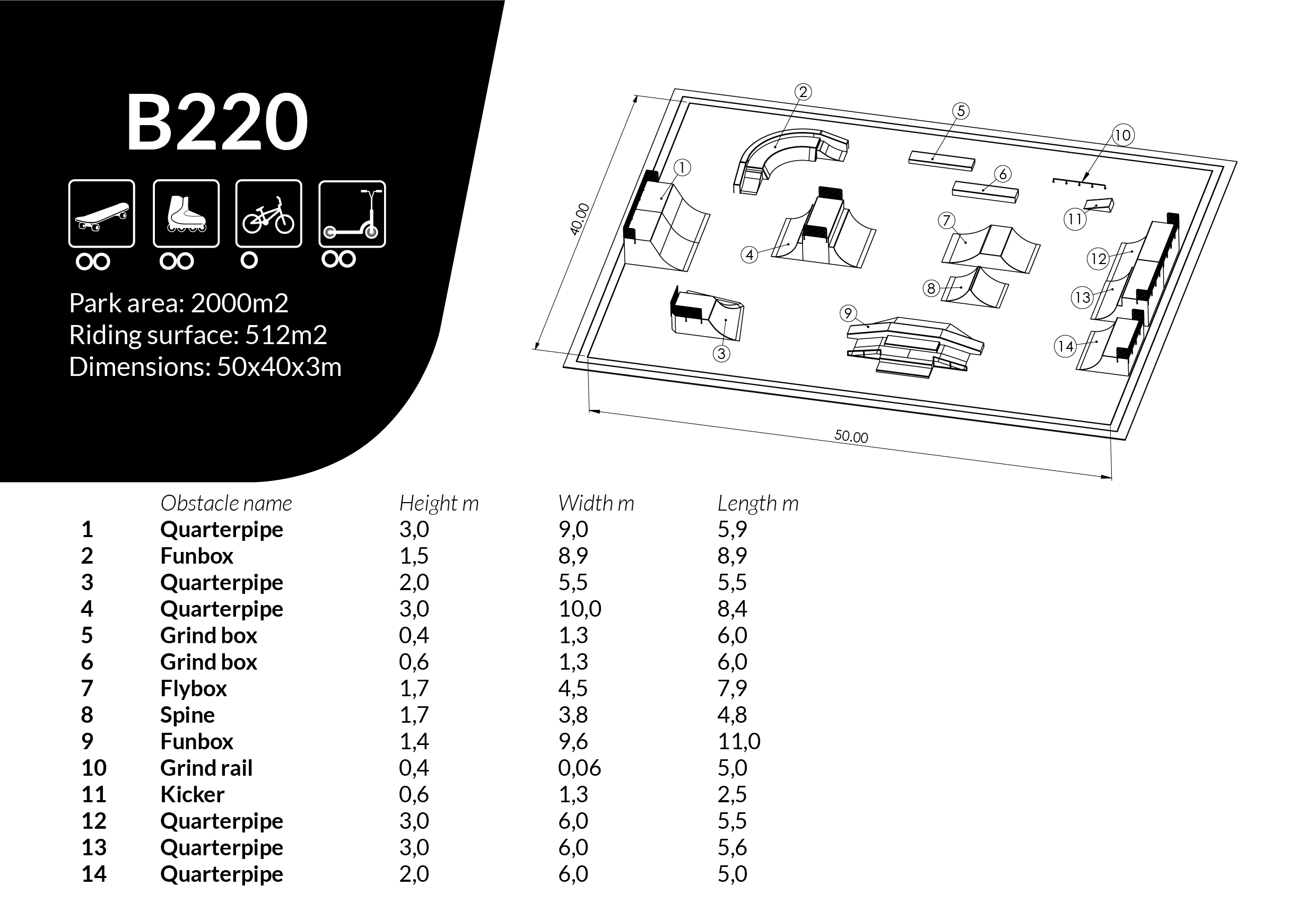 Skatepark L50 x W40 x H3