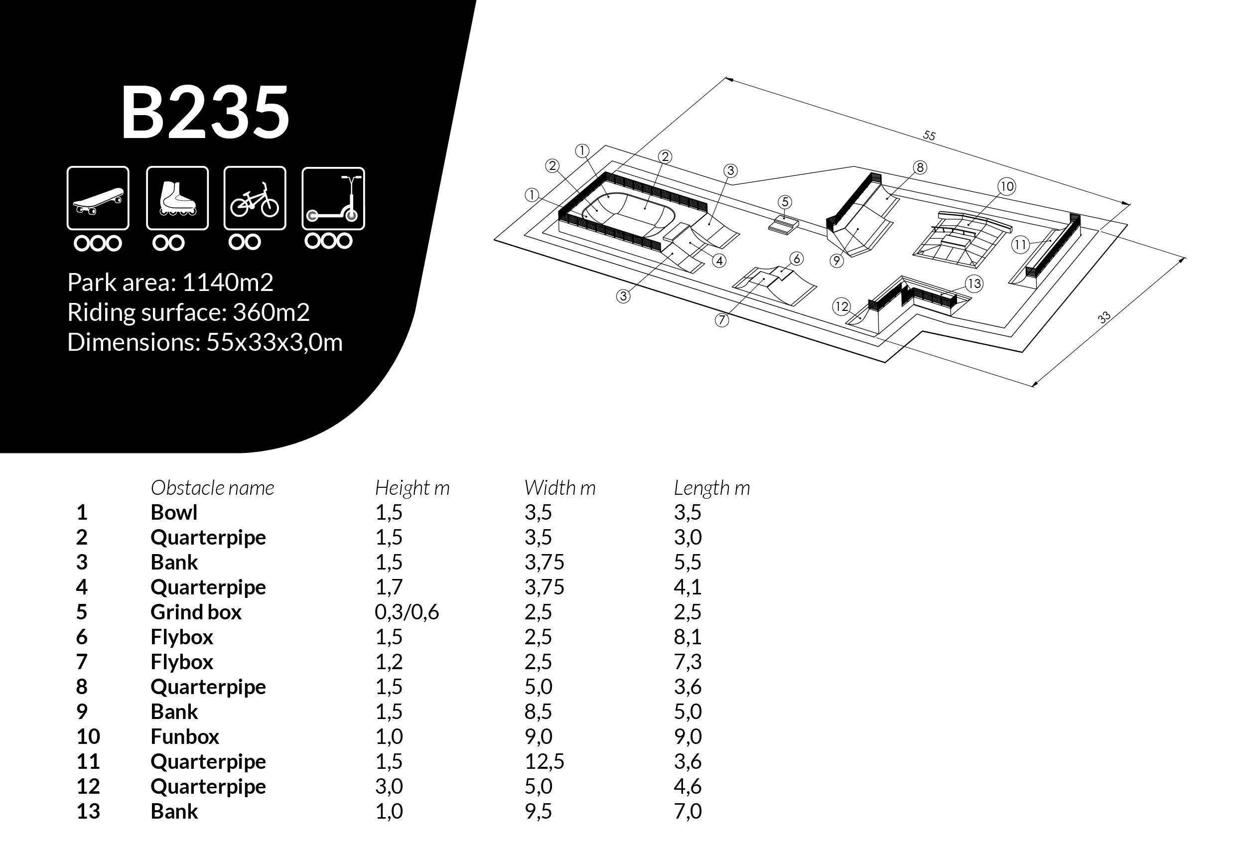 Skatepark L55 x W33 x H3