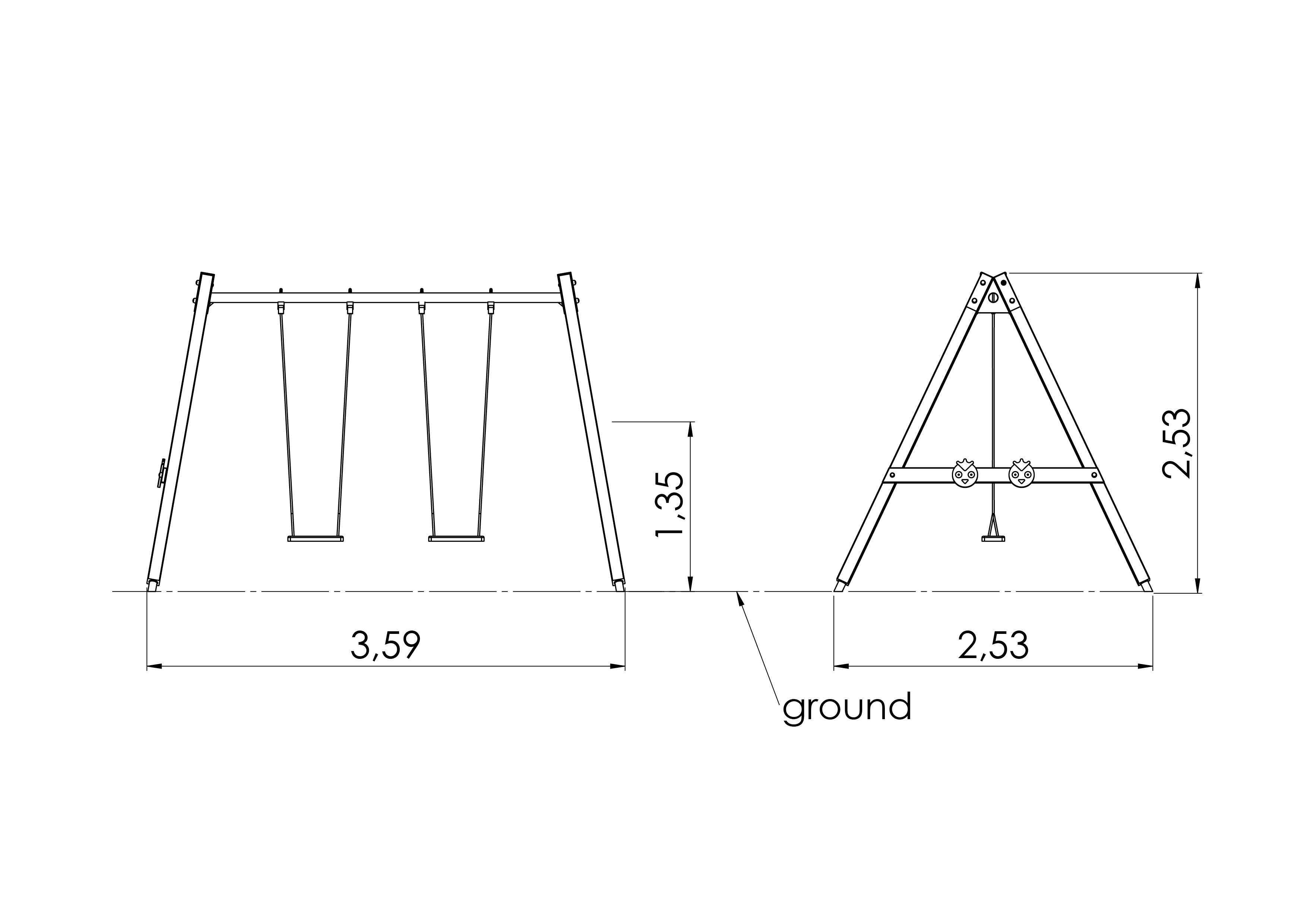 Home / Products / Playgrounds / Swings / Swing BABY BIRD 2 places, steel groundfixings (without seats and fittings)