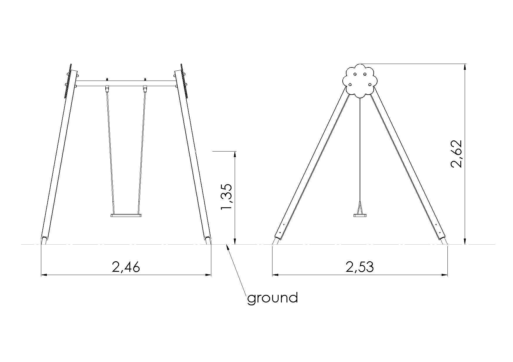 Home / Products / Playgrounds / Swings / Swing BELL-FLOWER 1 place, steel ground fixings (without seat and fittings)