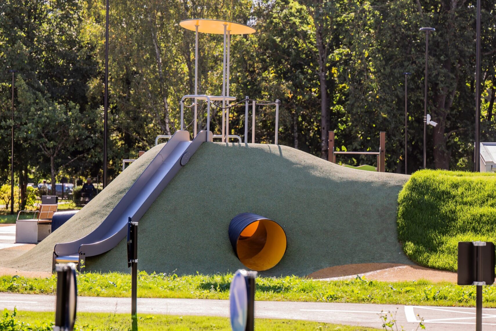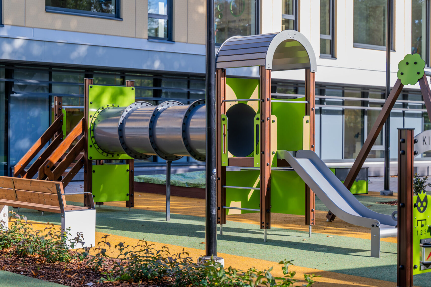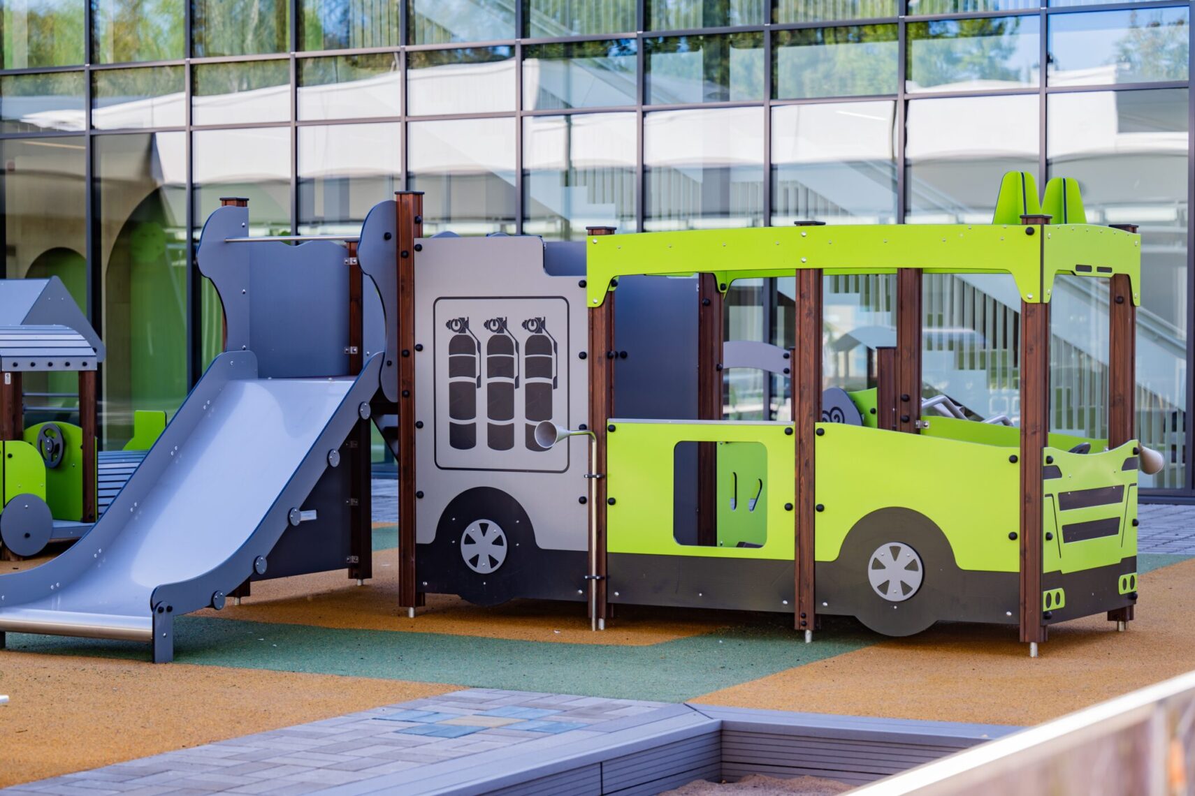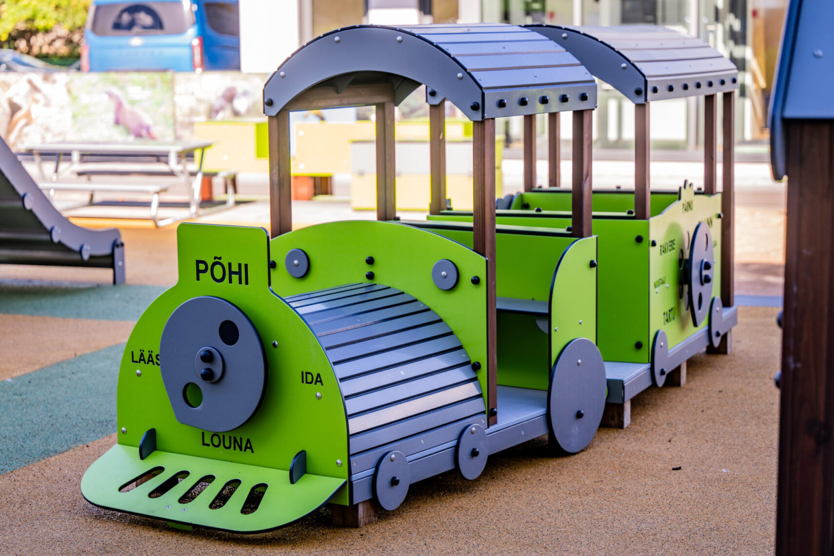 At Tallinn Meelespea Kindergarten, children began the school year in a brand-new building and on a spacious, newly created outdoor area. The new courtyard supports a wide range of active play, offering children plenty of opportunities for discovery through new attractions and inspiring play experiences. Music and role-play areas, along with 10 different play centers, bring joy and development for both younger and older children. In addition, the exciting “Mole Metro” and various outdoor fitness equipment help children stay physically active.
