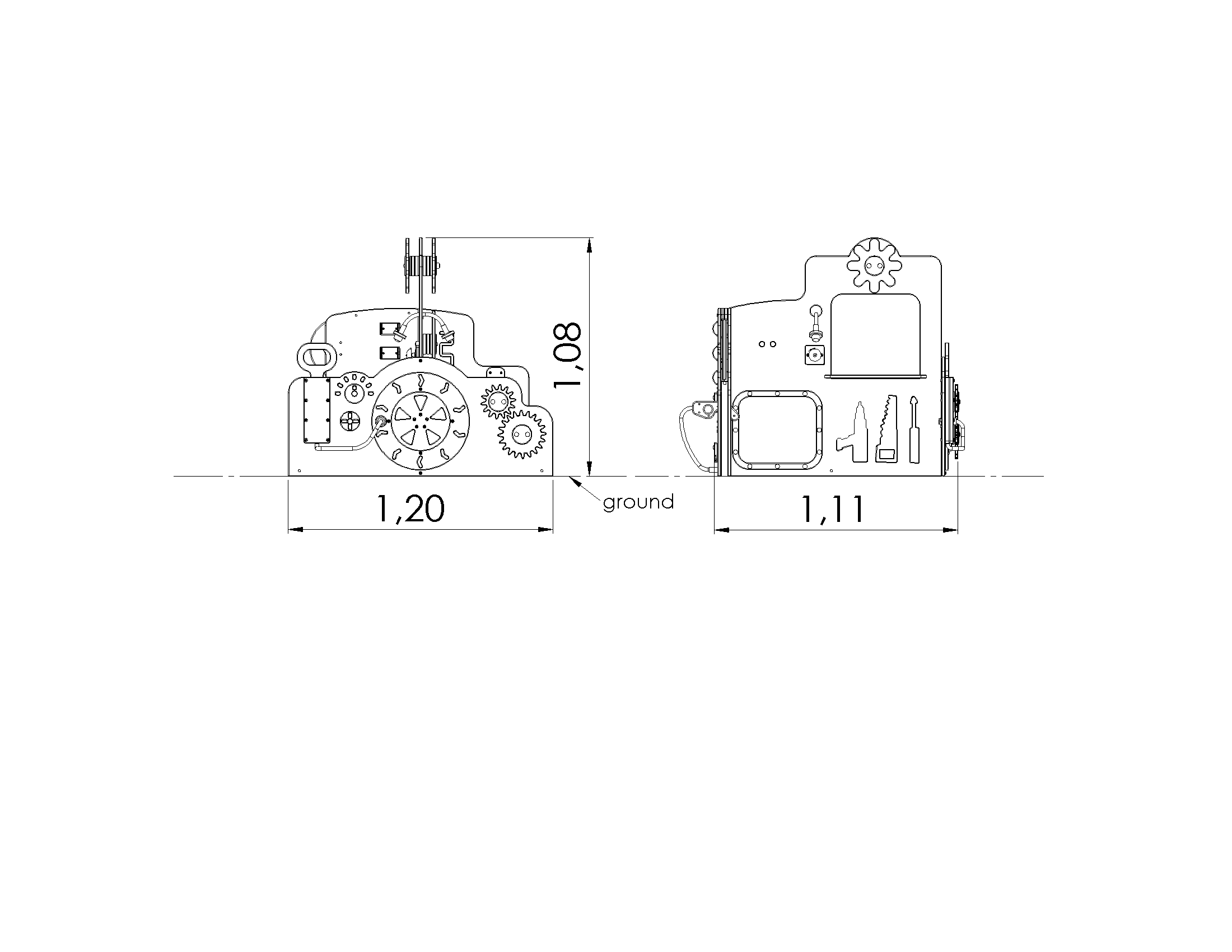 Tootel on veel 1 mõõdikuga keeratav nupp, 1 pluss-kujuline keeratav nupp, 1 nuppudega nöör, mida saab tõmmata mõlemalt poolt seina, 1 aken letiga, 1 läbipugemisava, 2 köie otsas olevat kütusepumpa, mis käivad seina sisse pesadesse, 1 keeratav numbritega ketas kütusepumba näidikuga, 3 keerlevat silindrit kütusepumba küljes, 2 soone sees liigutatavat nuppu automänguga, 1 kelluke ja 1 paneel tööriistade kujutistega.
