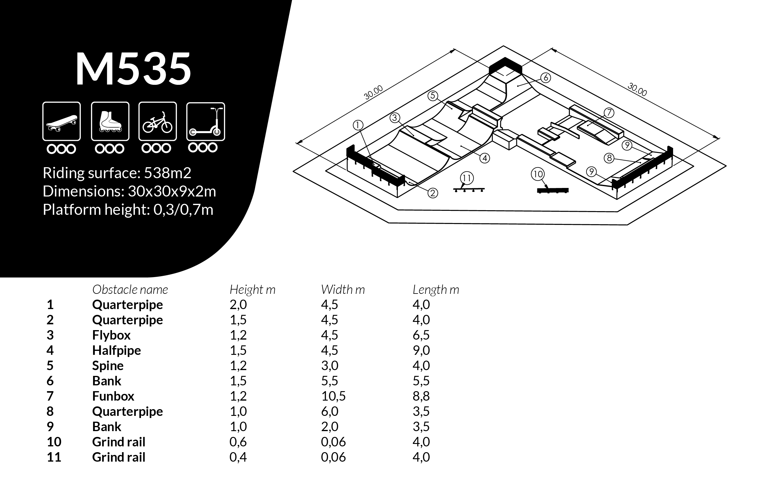 Avaleht / Tooted / Skatepargid / Monoliitsed skatepargid / Base monolith skatepark H2.0xW9.0xL30.0x30.0m