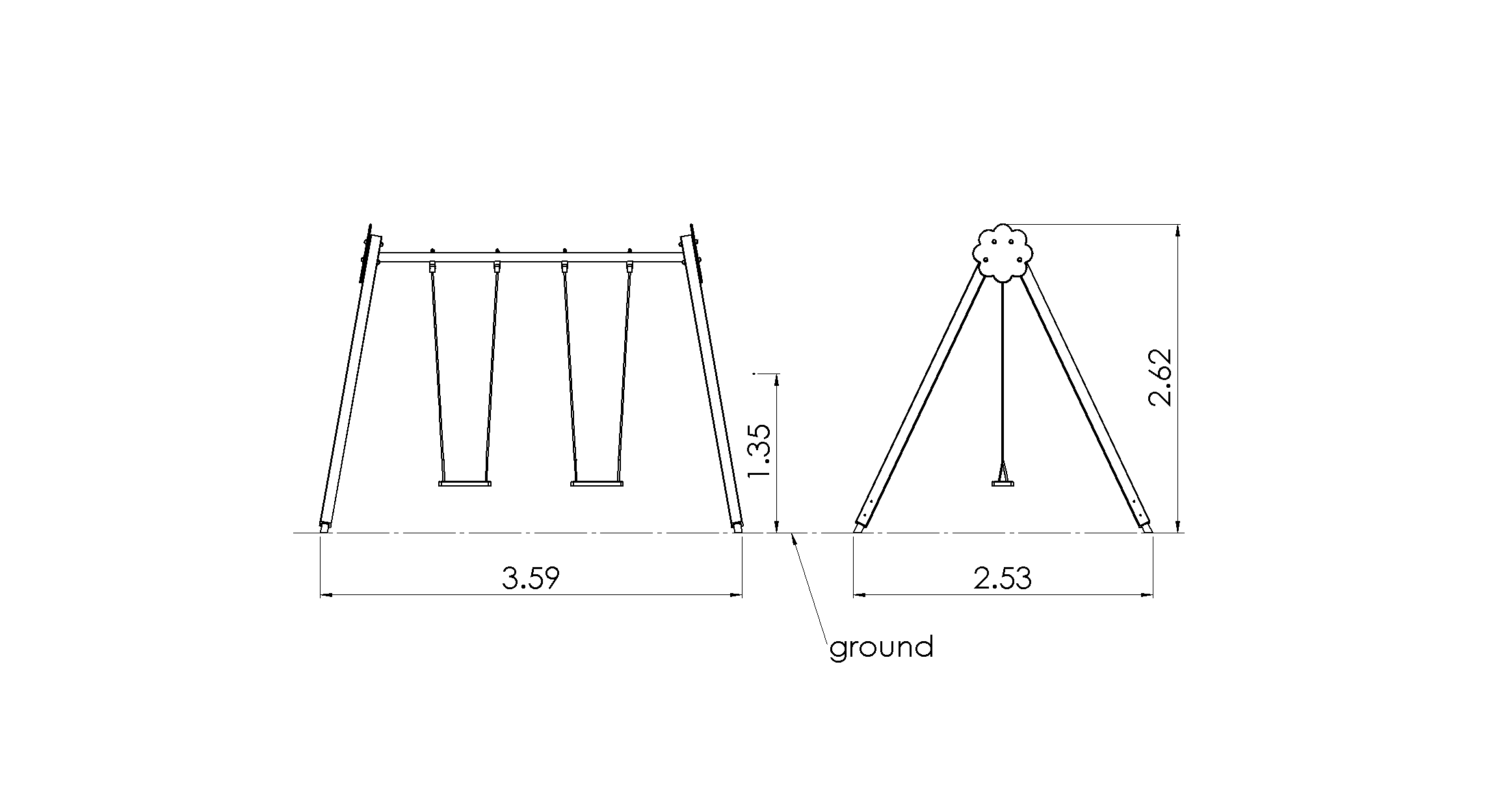 Avaleht / Tooted / Mänguväljakud / Kiiged / Kiik BELL-FLOWER 2-kohaline, k.2,6m, metallist maakinnitustega (ilma istmeteta)