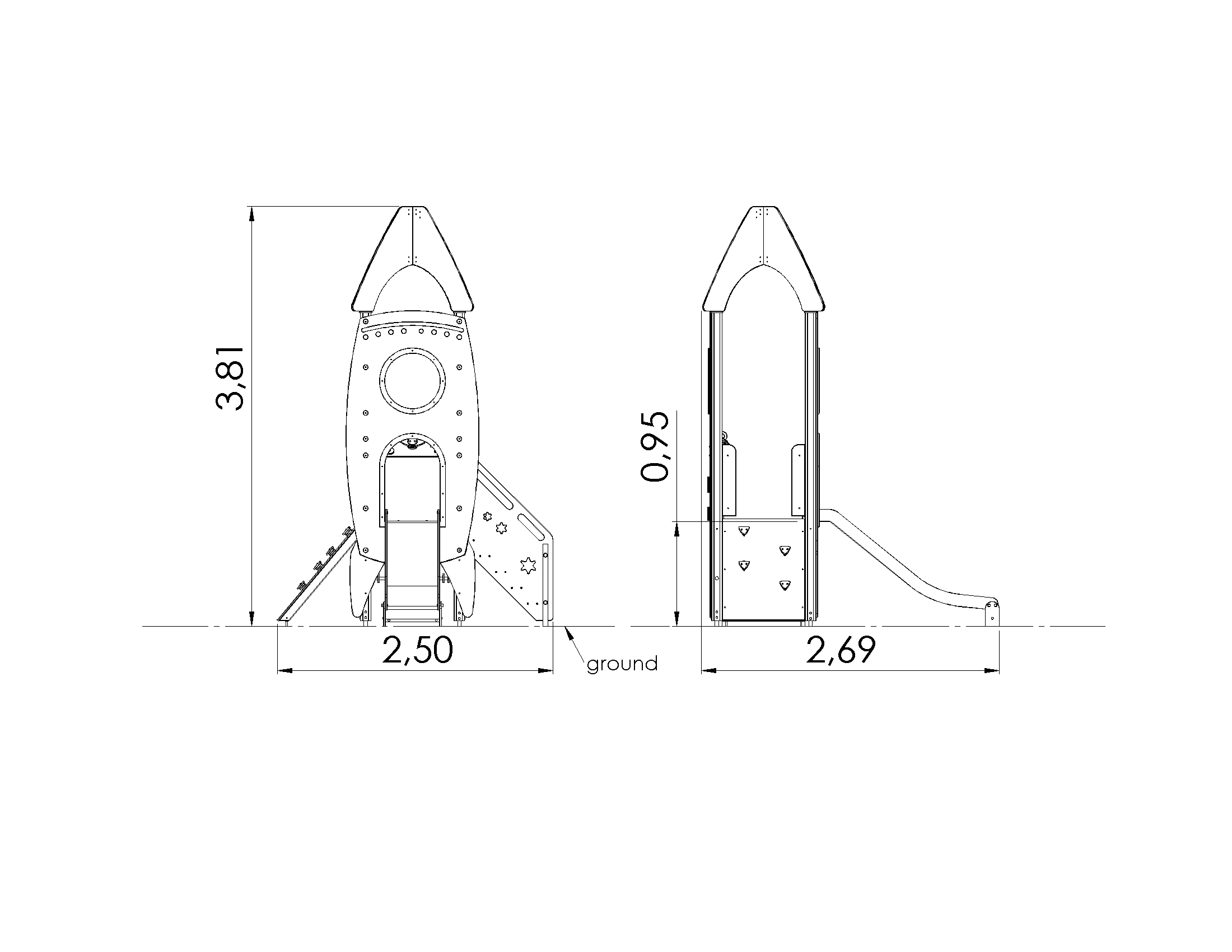 Lase kujutlusvõimel lennata ja asu põnevale teekonnale tähistaeva poole! Vahval raketikujulisel liumäel on trepp ja ramp, mida mööda saab raketi sisse ronida ja tulla ka tagasi maale.