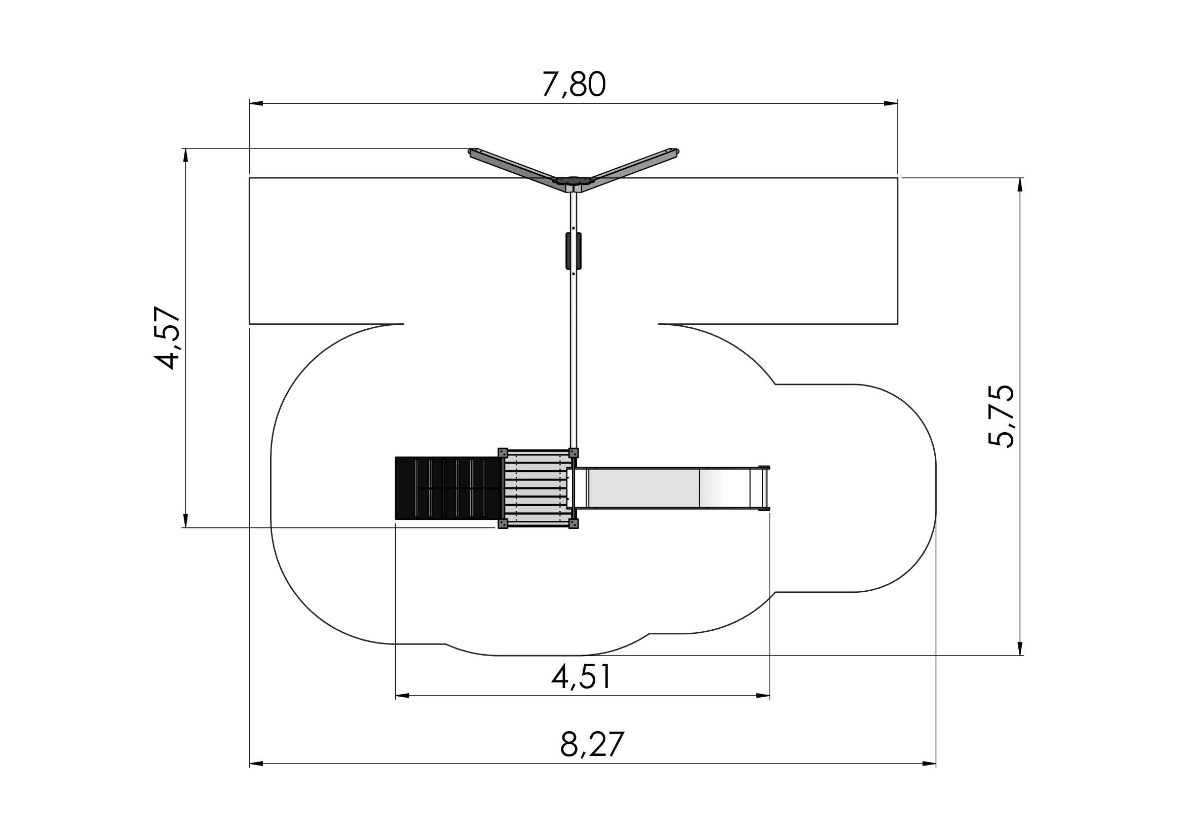 Kombineeritud mängulinnak kiige, liurenni ja astmetega kaldteega. Platvormi all on peidus vahva mängunurk, kuhu saab valida istepingiga kööginurga või autojuhikabiini elemendid. Linnakuosaga on ühendatud tugev metallist kiigetoru, mille külge kinnitatakse alumiiniumtugevdusega kummist kiigeiste (rippkiigekomplekt KRK2 sisaldub tootehinnas). Linnaku külgpaneele on võimalik vahetada erinevate tegeluspaneelide või temaatiliste prinditud paneelide vastu (loomad, linnud, kalad, puud, marjad jne), mille täpsed kujundused kooskõlastame kliendiga tellimuse käigus.