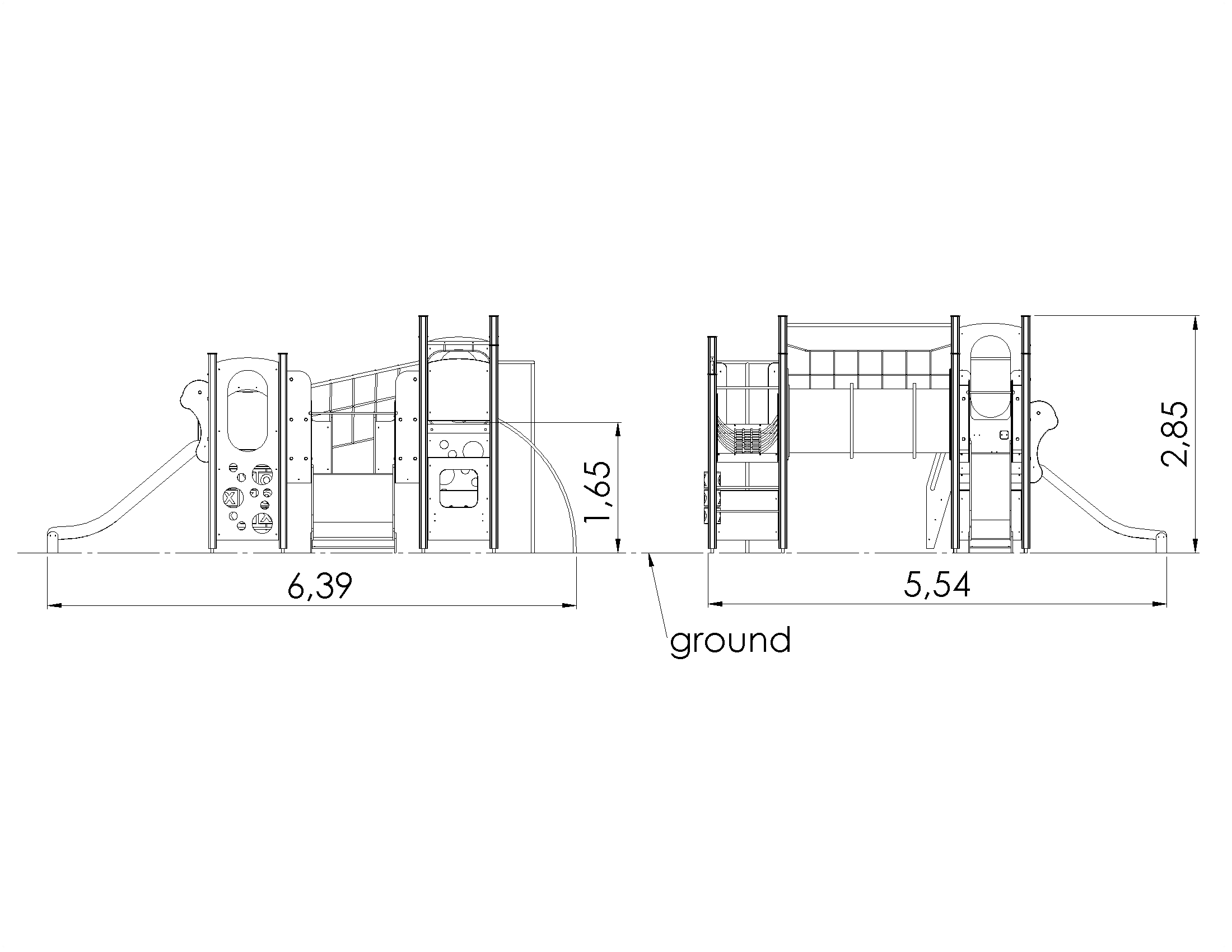 Nelja platvormiga kompaktne mängulinnak sisaldab mitmekesist elementide valikut paljudeks erinevateks tegevusteks. Linnakule pääseb mööda vertikaalset või kaarjat redelit. Platvormide vahel saab liikuda võrktunneli, kinnise ronimistunneli ja kaldus võrksillla abil. Linnakul on kaks liurenni ja ronimisseina, lisaks tuletõrjetoru ja tegelusmäng Trips-Traps-Trull. Linnaku külgpaneele on võimalik vahetada erinevate tegeluspaneelide või temaatiliste prinditud paneelide vastu (loomad, linnud, kalad, puud, marjad jne), mille täpsed kujundused kooskõlastame kliendiga tellimuse käigus.