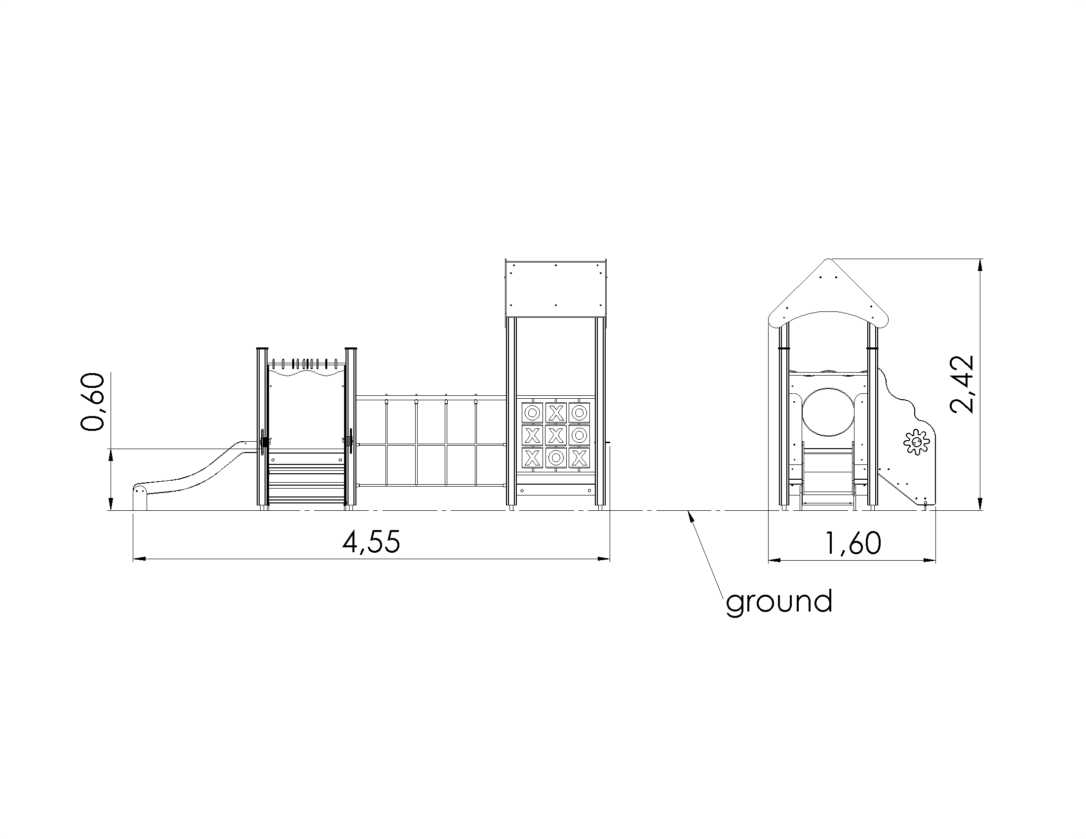 Mudilaste mängulinnak kahe platvormi ja liurenniga. Liurenniga platvormile pääseb mööda väikest treppi. Linnakul on ronimiseks madal võrksein, mängulusti lisavad Trips-Traps-Trulli mäng, poelett, arvelaud ja pöörlevad tegeluselemendid. Linnaku külgpaneele on võimalik vahetada erinevate tegeluspaneelide või temaatiliste prinditud paneelide vastu (loomad, linnud, kalad, puud, marjad jne), mille täpsed kujundused kooskõlastame kliendiga tellimuse käigus.
