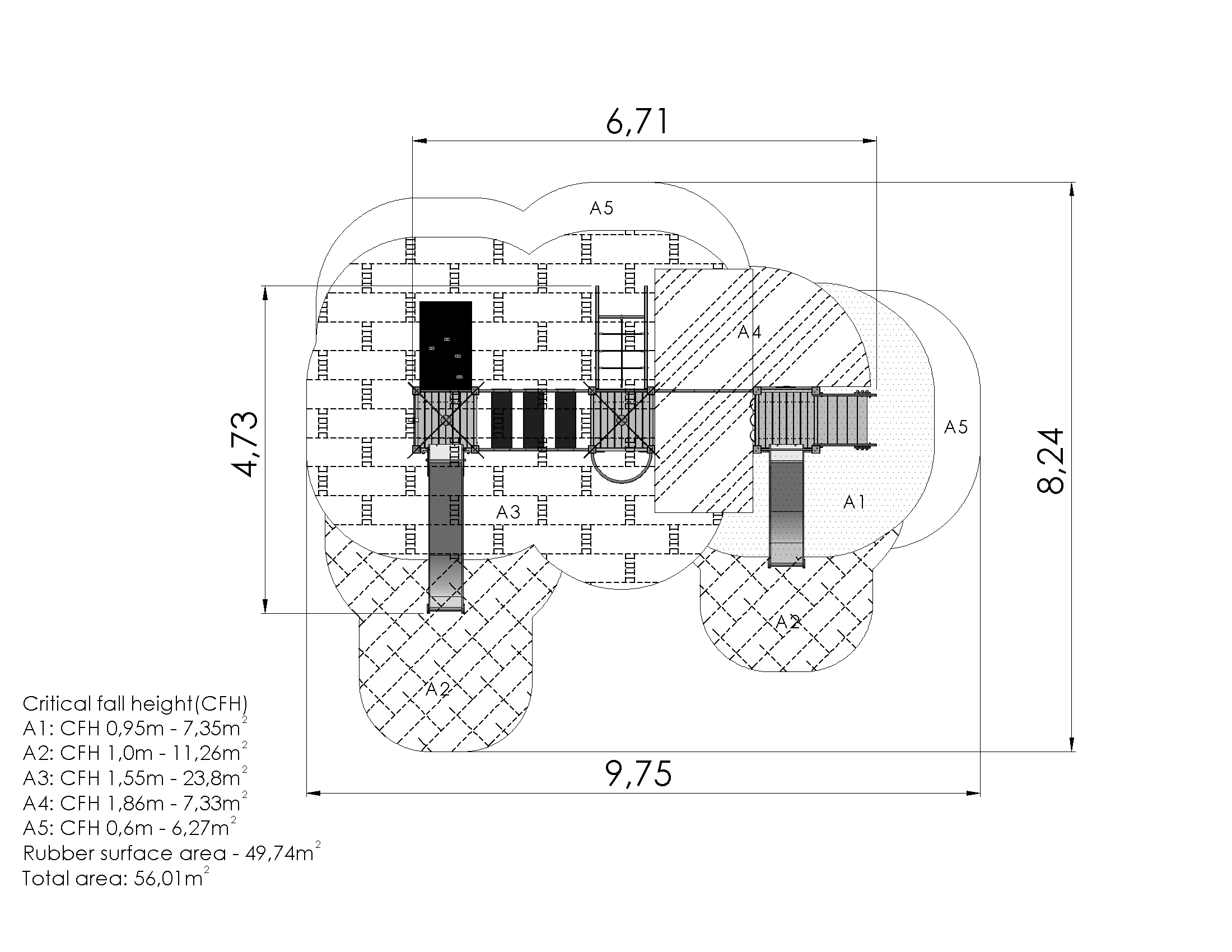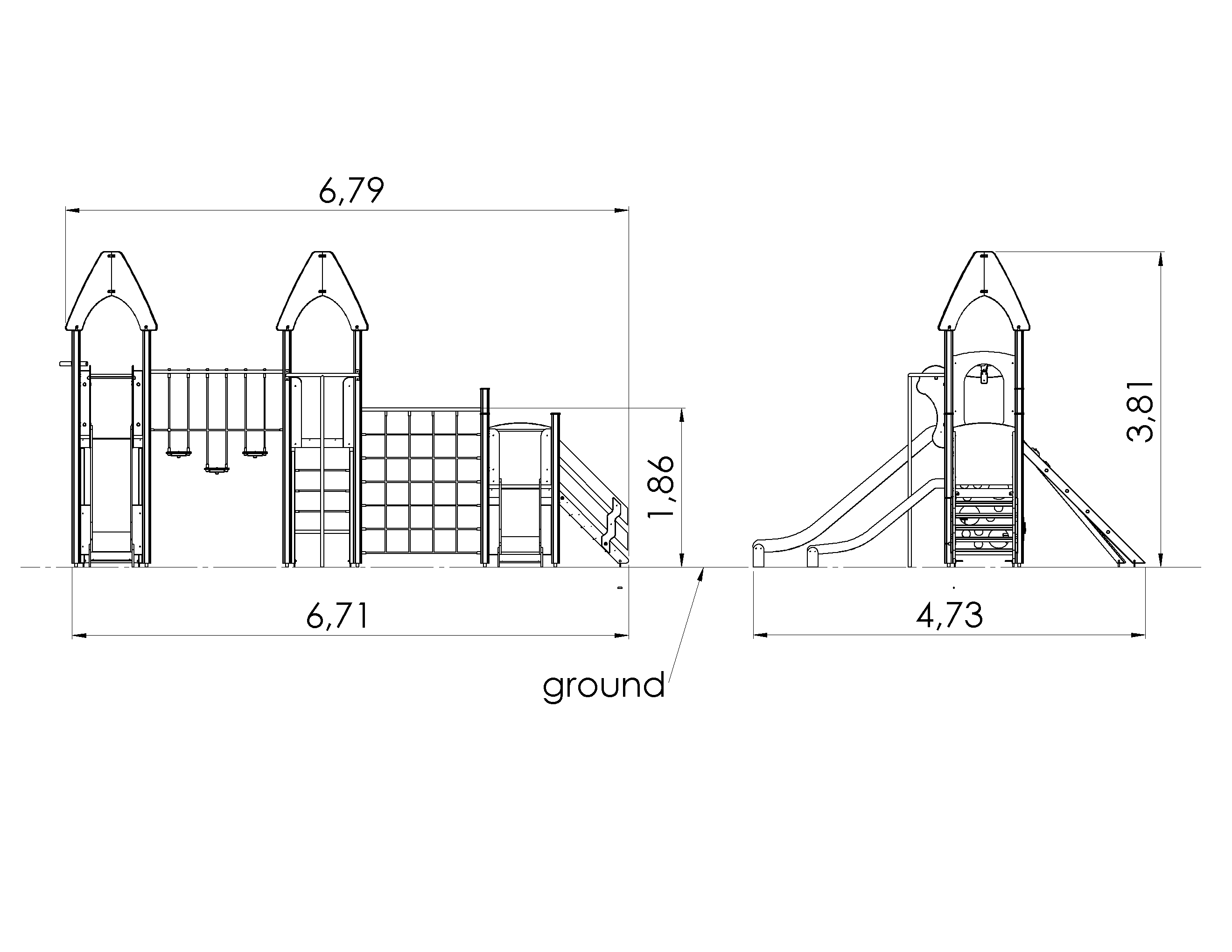 Kombineeritud, mitmekesiseks tegevuseks sobiv mängulinnak 3 platvormi, 2 liurenni ja mitmete ronimiselementidega. Käsipuudega trepp viib madalale platvormile, mille külgedel Trips-Traps-Trulli ja kellaõppimise mängud ja liurenn. Kõrgematele platvormidele pääseb mägironimiskividega seina või võrgust kaldseina abil. Kaht kõrgemat platvormi ühendab käsipuude ja liikuvate astmetega tasakaalusild. Linnaku kõrgemalt poolelt saab alla libiseda mööda liurenni või tuletõrjetoru. Jõudu saab proovile panna ronides kahel erineval ronimisseinal. Mängulusti lisab vahva mängunurk, kuhu saab valida istepingiga kööginurga või autojuhikabiini elemendid. Linnaku külgpaneele on võimalik vahetada erinevate tegeluspaneelide või temaatiliste prinditud paneelide vastu.