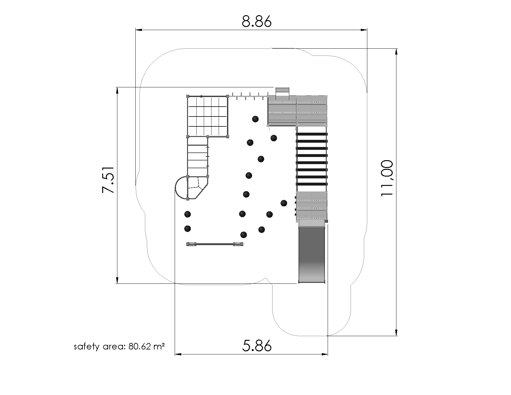 platvormid, trepid ja muud puidust detailid kaetud kulumis- ja libisemisvastase kahekomponentse spreiplastikuga;