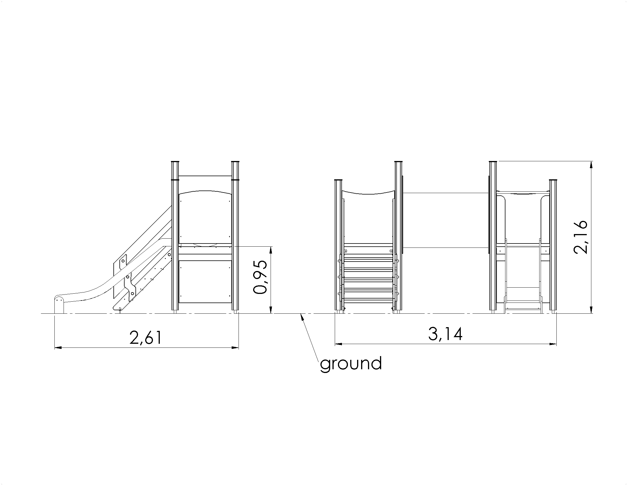 Väikelaste mängulinnak kahe platvormi, tunneli ja tegeluspaneelidega. Platvormile viib käsipuudega trepp, edasi saab liikuda läbipugemistoru abil. Linnaku külgpaneele on võimalik vahetada erinevate tegeluspaneelide või temaatiliste prinditud paneelide vastu (loomad, linnud, kalad, puud, marjad jne), mille täpsed kujundused kooskõlastame kliendiga tellimuse käigus.