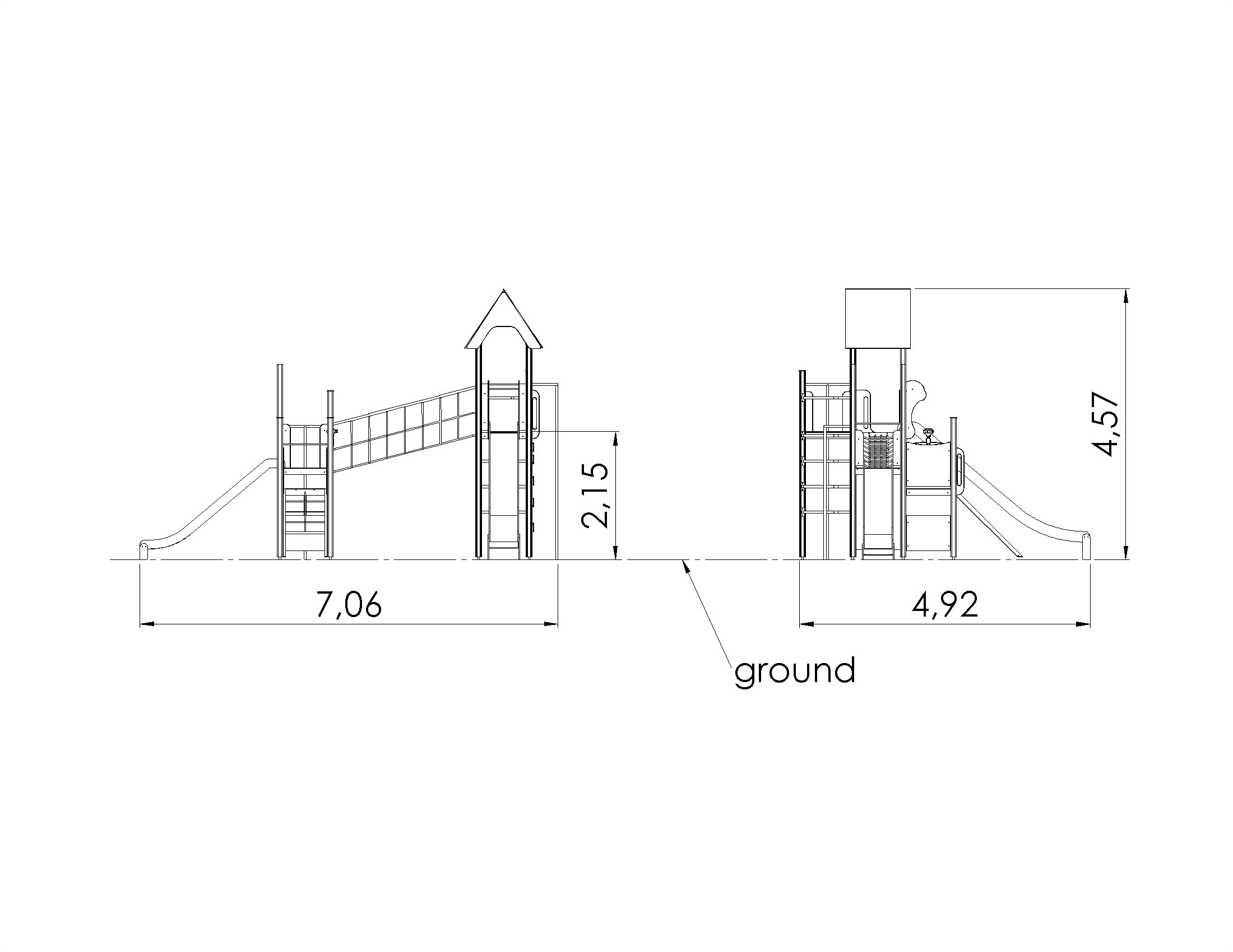 Mängulinnak kolme erineva kõrgusega platvormi, kahe liurenni ja ronimiselementidega. Madalaimale platvormile viib võrgust kaldtee ja sellelt saab liikuda järgmisele, millelt liurenni mööda taas alla sõita või jätkata teed kõrgemale. Edasi viib tee mööda käsipuudega võrksilda katusega platvormile ja siis liurenni või tuletõrjetoru abil uuesti maapinnale. Kõrgele platvormile pääseb ka otse, mööda vertikaalset kaarjat redelit ja ronimiskividega seina. Rollimängudeks on linnakul pöörlev rool ja binokkel, lisaks vahva mängunurk, kuhu saab valida istepingiga kööginurga või autojuhikabiini elemendid. Linnaku külgpaneele on võimalik vahetada erinevate tegeluspaneelide või temaatiliste prinditud paneelide vastu (loomad, linnud, kalad, puud, marjad jne), mille täpsed kujundused kooskõlastame kliendiga tellimuse käigus.