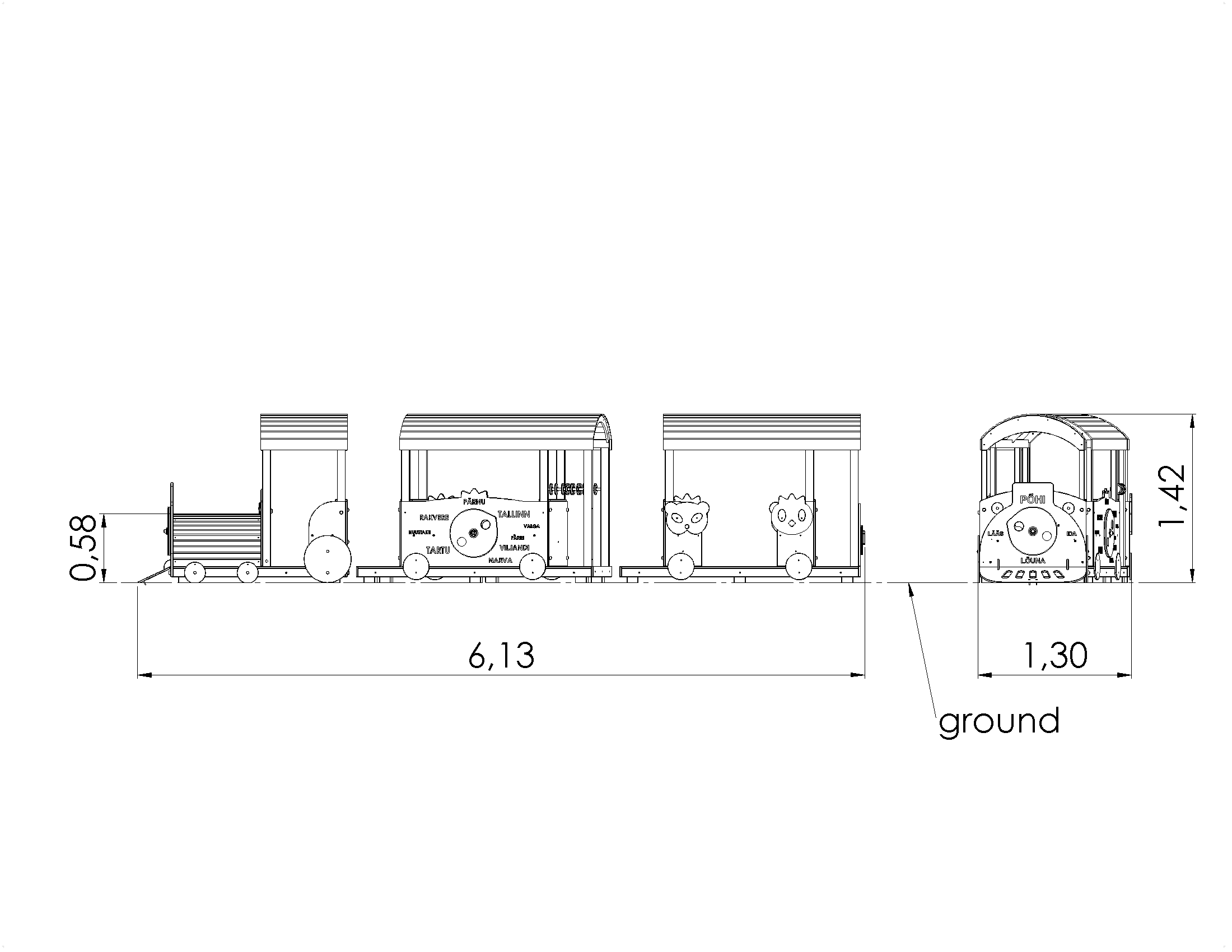 Mängurong CHOO-CHOO on iga väikese lapse unistustes. Saaks kasvõi korra juhtida seda kahe vaguni ja jõulise veduriga masinat, sõidutada sõpru. Iga rong väljub jaamast õigel kellaajal ja sõidab õiges ilmakaares, õigesse rongijaama. Seepärast on rongi ninaosas liigutatav kompass, tagaosas seieritega kell ja vaguni välisküljel linnad, kuhu rong reisijaid viib. Pikamaasõitjatele on igavuse peletamiseks arvelaud. Vaguniukse külgedel on loomanägudega konksud, kuhu lapsed saavad riputada oma üleriideid või koti.
