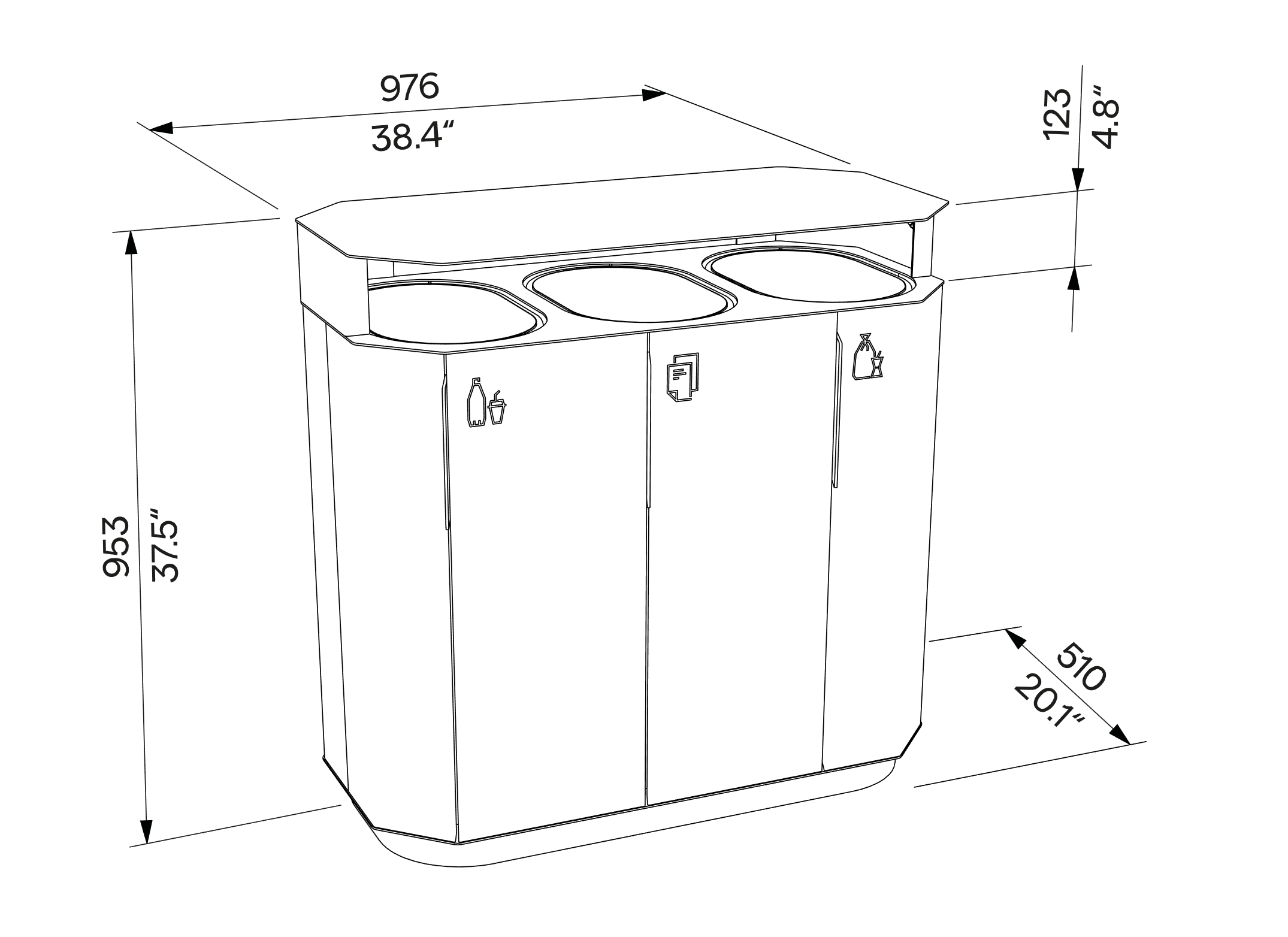 Prügikasti terasest tugiraam on kaetud alumiiniumkomposiitpaneelidega. Kastil on vihma eest kaitseks katus ning sees kolm eraldiseisvat konteinerit, mida saab ülespoole välja tõsta, kui katus lahti lukustada.