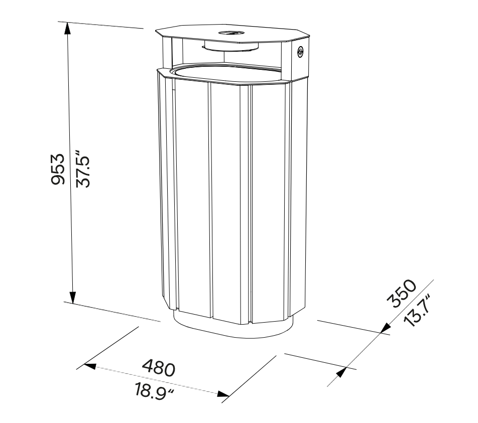 Kastil on vihma eest kaitseks katus sisseehitatud tuhatoosiga ning sees käepidemetega konteiner, mida saab ülespoole välja tõsta, kui katus lahti lukustada. Tuhatoosi saab tühjendada otse prügikonteinerisse.