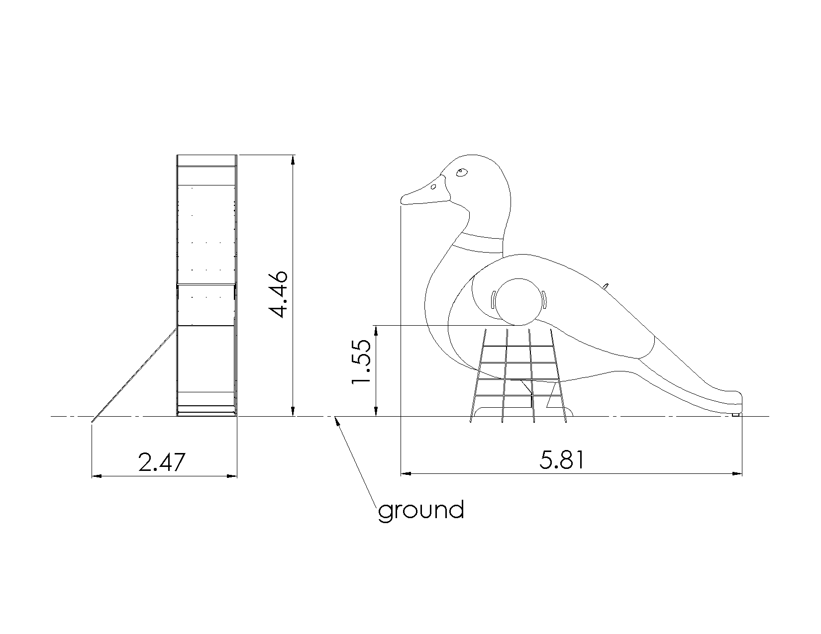Toote konstruktsioon, tugipostid ja metalldetailid on valmistatud kuumtsingitud metallist. Toote küljepaneelide materjal on 19mm paksune värviline HDPE plastik. Liumäe liurenn on HDPE plastikust külgede ja roostevaba metallist põhjaga. Toote võrk on alumiiniumist pressitud ristühendustega ning kinnitustarvikud on roostevabast terasest.