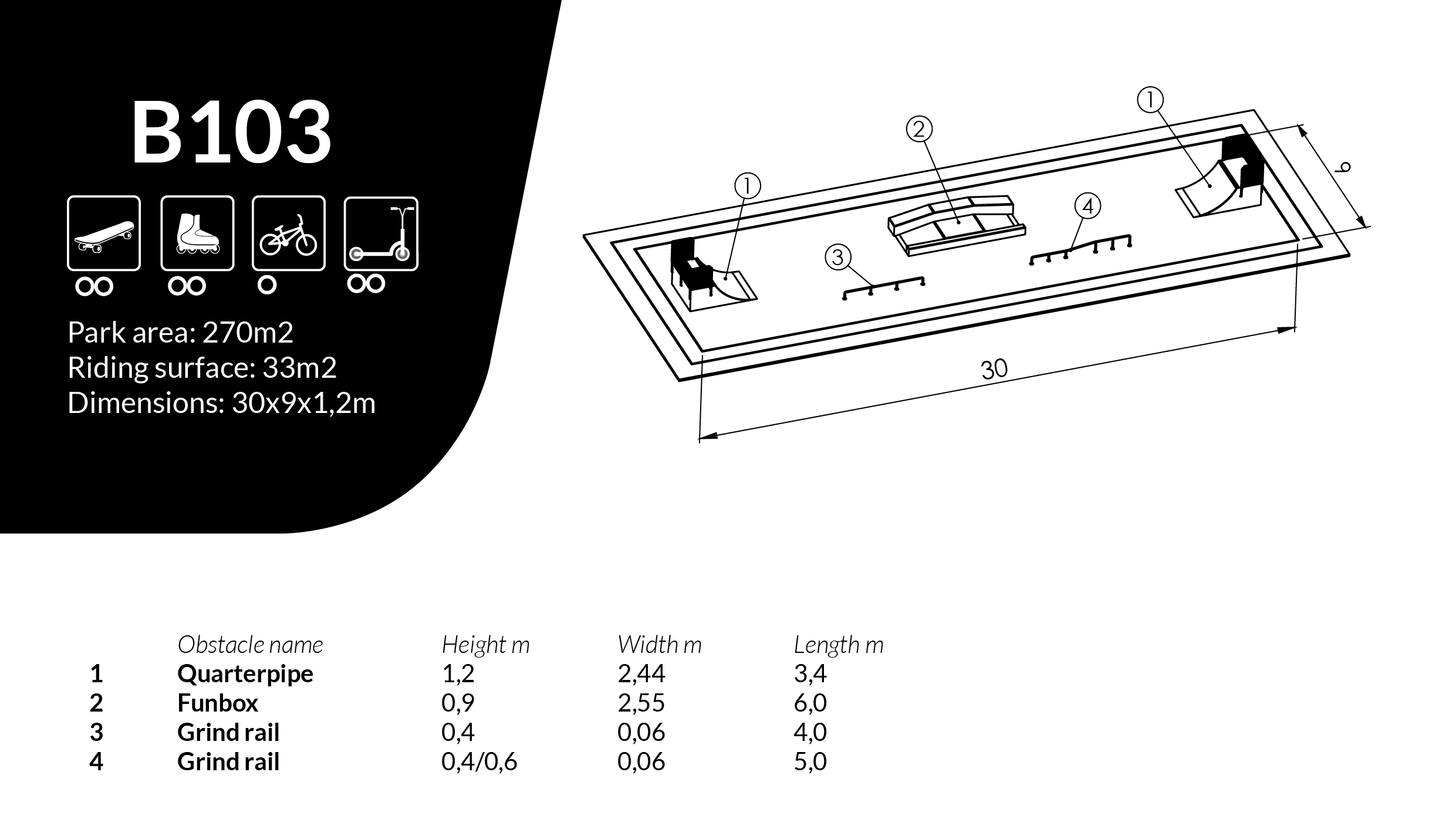 Skatepark L30 x W9 x H1.2