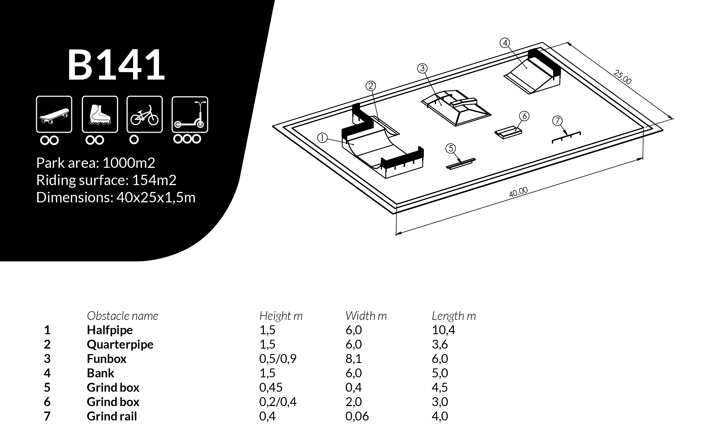 Avaleht / Tooted / Skatepargid / Valmislahendused / Skatepark L40 x W25 x H1.5