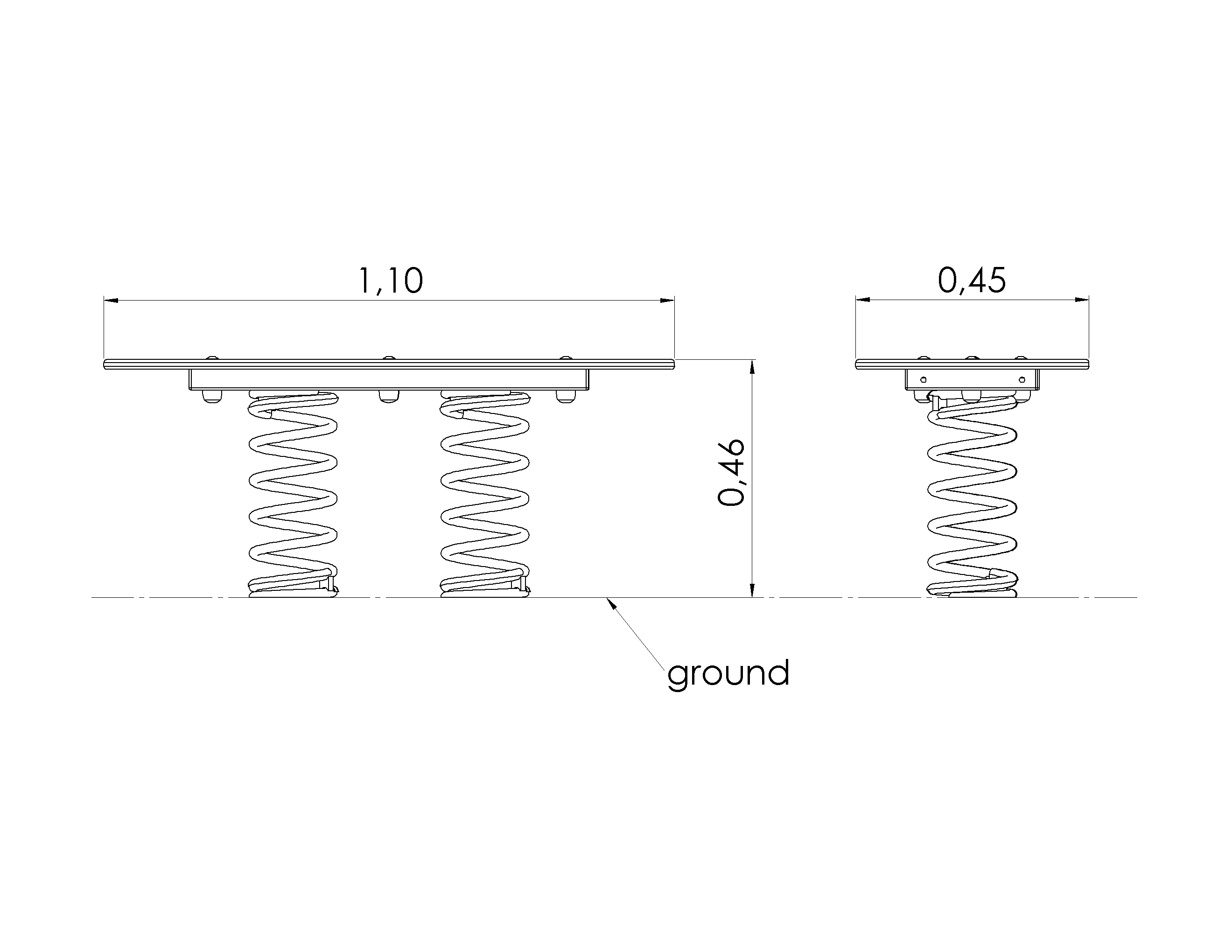 Tasakaaluplaat on MF versioonis kaetud libisemisvastase 19 mm kummiga kaetud HDPE-plastikuga ja PE versioonis vineerist. Mehhanism ja vedrud on valmistatud tsingitud ja pulbervärvitud terasest. Toote maapinnakinnitused on valmistatud kuumtsingitud metallist ning standardlahendusena betoneeritakse toode maasse.