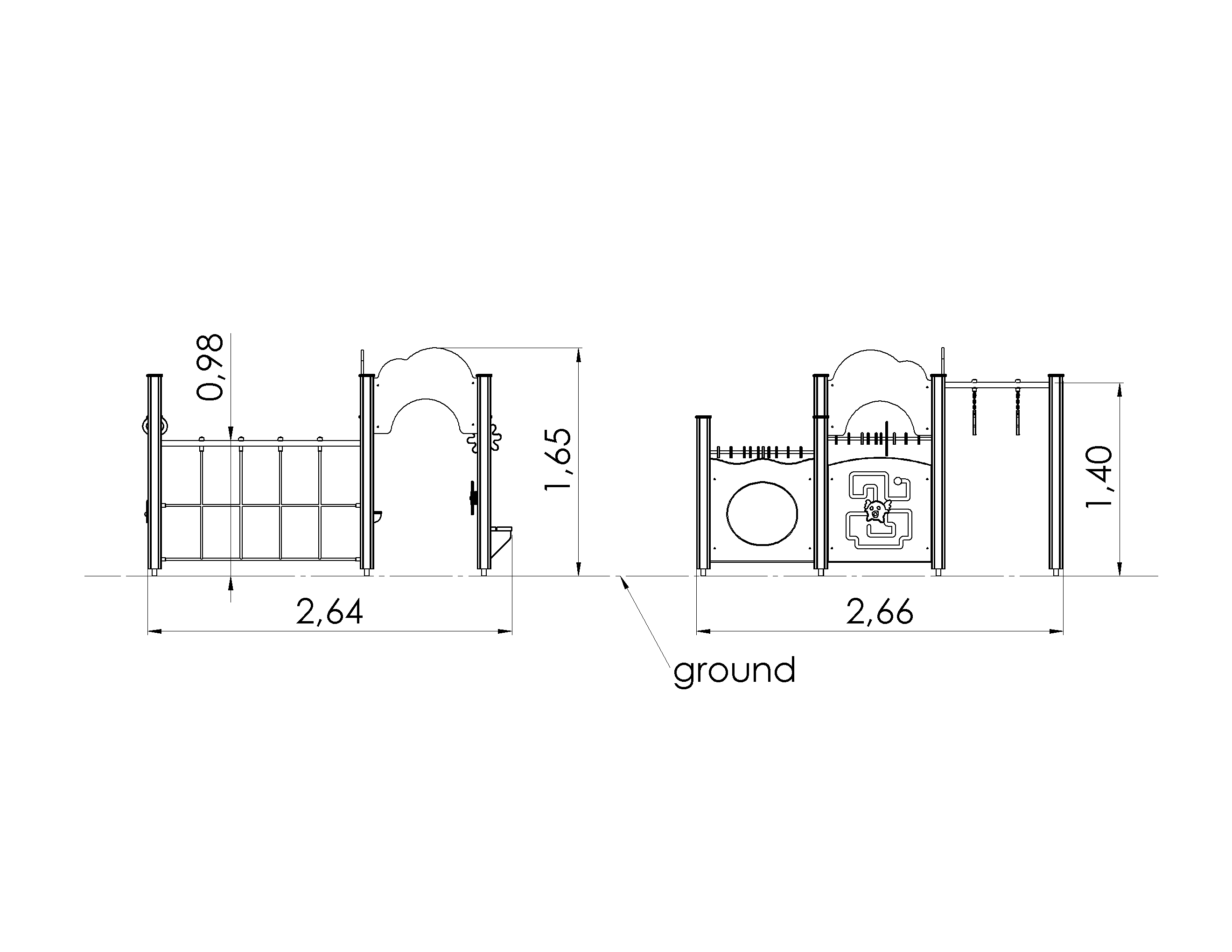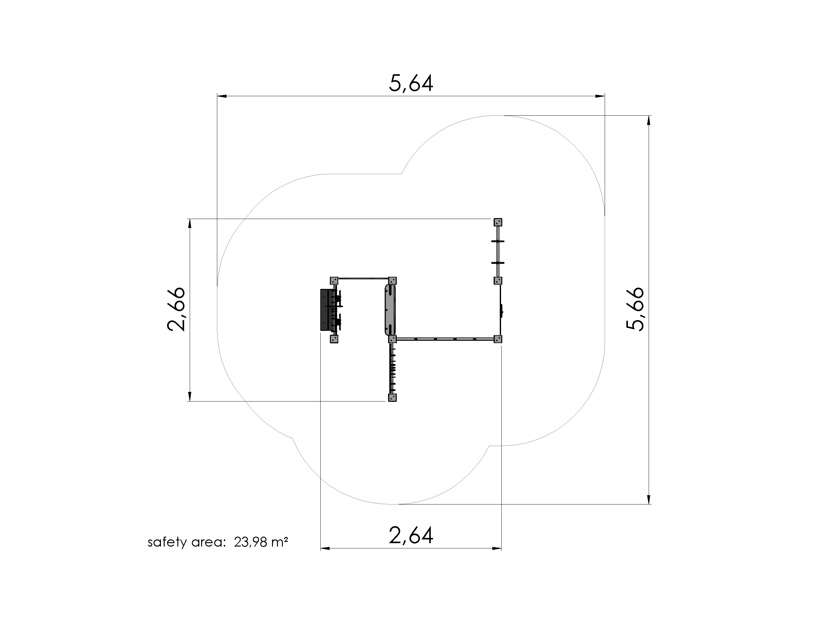 Tegelussein, mis koosneb erinevatest paneelidest- Flyer, paneel läbipugemisauguga, ronimisvõrk, kaks arvelauda ja kaks keeratavat rooli. Lisaks on tootel istumiseks pingike, väike müügilett ja rippumisrõngad.