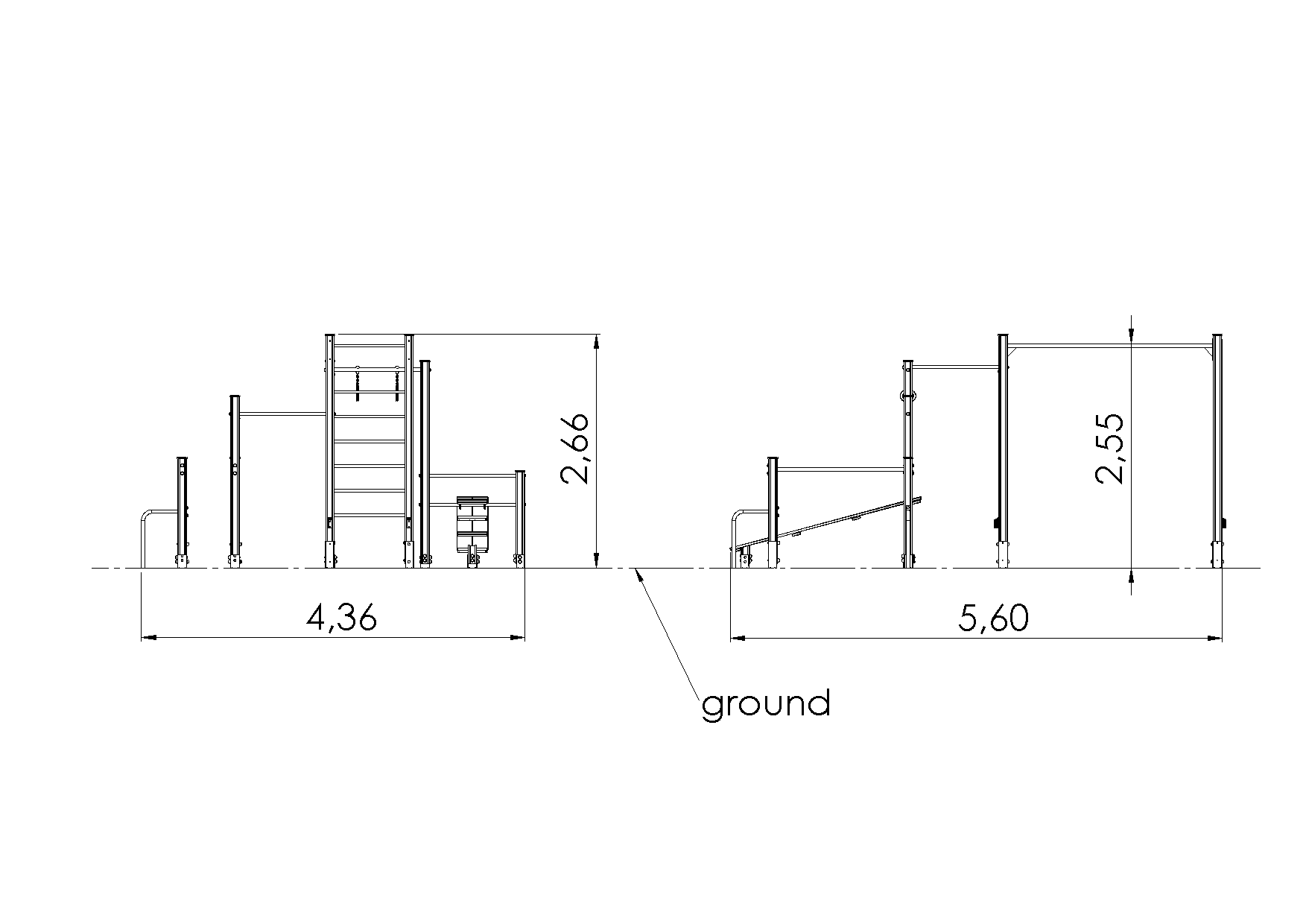 Kompaktne tervisespordi kompleks, mis koosneb rippredelist, rööbaspuudest, ronimisredelist, kõhulihaste pingist, 2 rippkangist ja rippkangist, millel on ka rippumisrõngad.