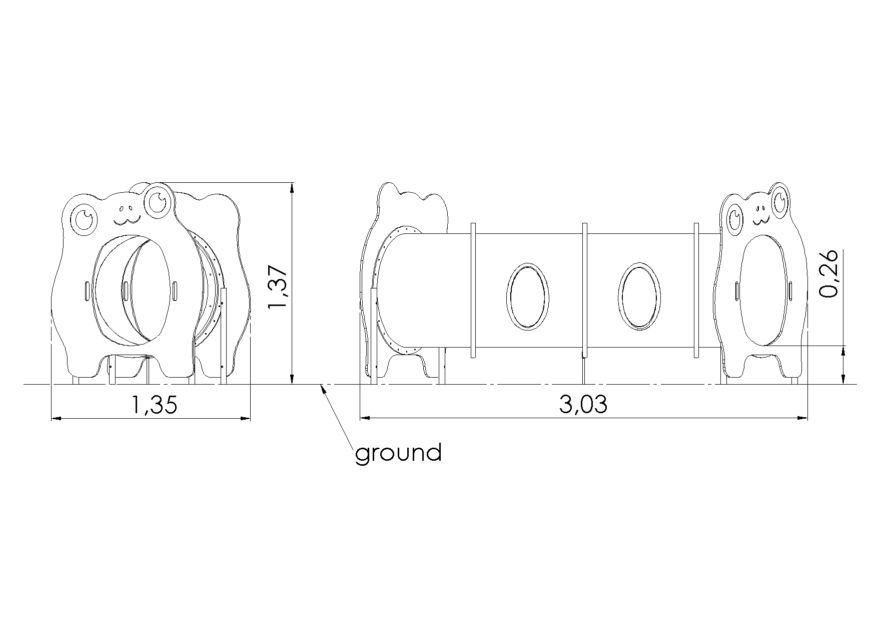 Tunnel "Konnake" pakub lastele vahvat ja arendavat mänguelamust! See mänguelement on loodud spetsiaalselt pisikestele avastajatele, kes armastavad ronida. Konnakese disain annab mänguväljakule lõbusa ja sõbraliku ilme, pakkudes samal ajal füüsilist väljakutset, mis arendab laste koordinatsiooni, osavust ja liikumisoskusi.
