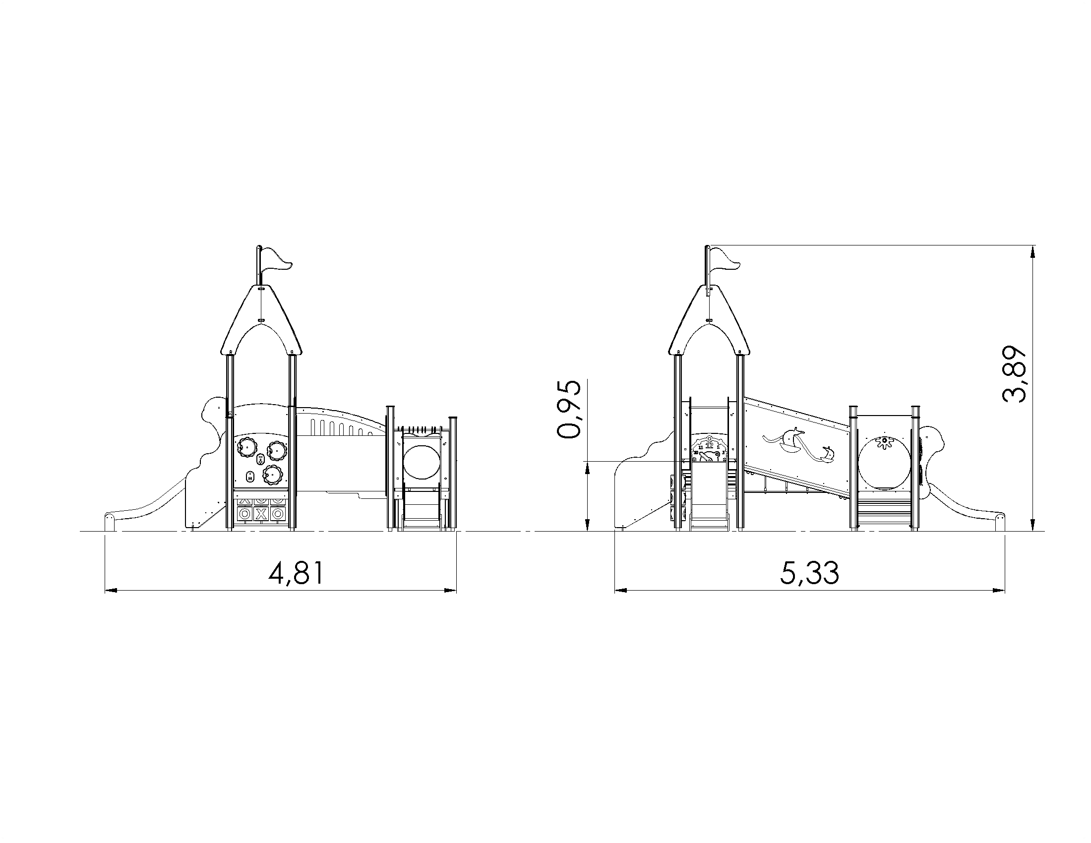 Nelja platvormiga kompleksne väikelaste mängulinnak, milles on ühendatud hulganisti elemente erinevate füüsiliste ja motoorsete oskuste arendamiseks ning aktiivseks mänguks. Linnakule pääseb mööda käsipuudega treppi või astmetega kaldteed. Platvormide vahel liikumiseks on käsipuudega turvaline võrksild, kaks astmetega kaldsilda ja läbipugemistunnel. Liulaskmiseks on valida kahe erineva kõrgusega liurenni vahel. Motoorsete oskuste arenguks on linnakul arvelaud, pöörlev arvutuspaneel, Trips-Traps-Trulli mäng, seieritega kell, liigutatavad purjekad ja kapteni rooliratas.