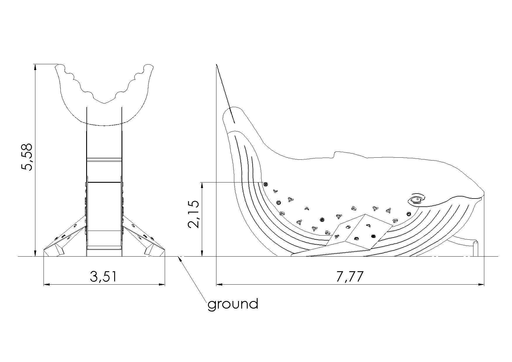 Ainulaadne veeliumägi VAAL on disainitud nii, et vaala sabast saab üles ronida 2,15m kõrgusele platvormile ja sealt alla vette libiseda. Tänu küljel asuvatele ronimiskividele saavad lapsed ronida ka külgpaneelidele.
